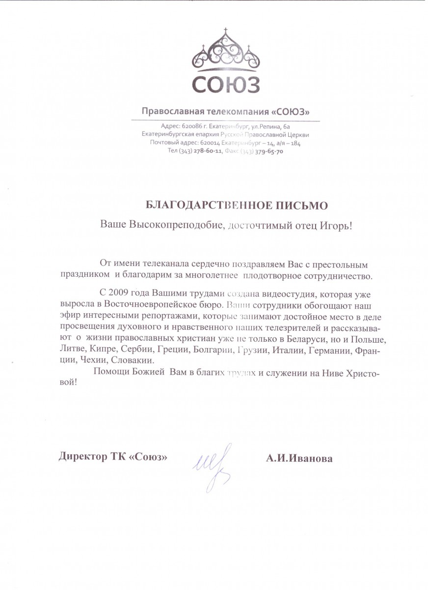 От имени телеканала сердечно поздравляем Вас с престольным праздником и благодарим за многолетнее и плодотворное сотрудничество.