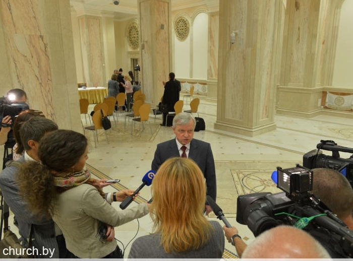 | 4 ИЮНЯ 2013 (Вторник) 15:19:50 В своём выступлении в рамках пресс-конференции «О подготовке и проведении празднования 1025-летия Крещения Руси» уполномоченный по делам религий и национальностей Леонид Гуляко напомнил, что в 2003 году правительство Беларуси и Белорусский Экзархат подписали соглашение о сотрудничестве. Позже были заключены аналогичные соглашения между епархиями БПЦ и облисполкомами, а также Мингорисполкомом, между церковными структурами и различными ведомствами. Сейчас обобщаются материалы, чтобы к 10-летию выпустить книгу о государственно-церковном взаимодействии в Беларуси.Вице-премьер Анатолий Тозик отметил: «Мы очень высоко оцениваем результаты нашего сотрудничества. Трудно даже представить, сколько бы мы потеряли, если бы с самого начала государство и церковь не осознали, что сохранить духовную культуру страны можно только вместе». Он обратил внимание, что соглашение было подписано с учетом уже имевшегося опыта сотрудничества: «Мы не в 2003 году стали сотрудничать, а раньше». Вице-премьер также отметил: «Православие прежде всего помогает нам сохранять ― в белорусском языке есть такое слово ― “людскасць”. Сегодня для нас это очень важно, когда мы сталкиваемся с реальными угрозами разрушения духовности, моральности - того, что делает человека человеком». / sobor.by/ По материалам church.by (просмотров 4852) |