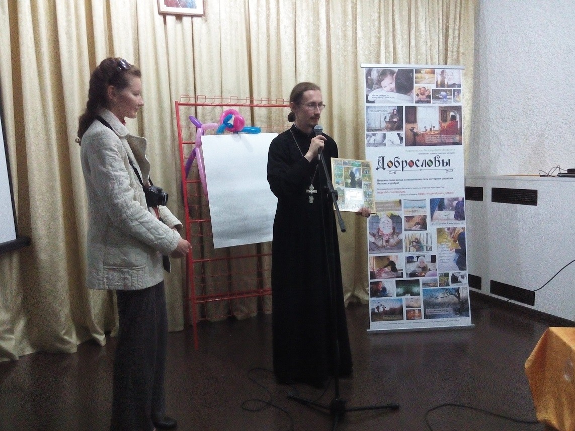 В перерыве не обошлось и без чая с печеньем и бутербродами. Также была вручена награда победителю этапа конкурса интернет-плакатов «Добрословы», который проводится на призы Издательства Белорусского Экзархата. Учащаяся православной пресс-школы «Аксион эстин» ("Достойно есть", греч.) Наташа Высоцкая получила книгу «ПРАВОСЛАВНЫЕ СВЯТЫЕ ЗЕМЛИ БЕЛОРУССКОЙ».