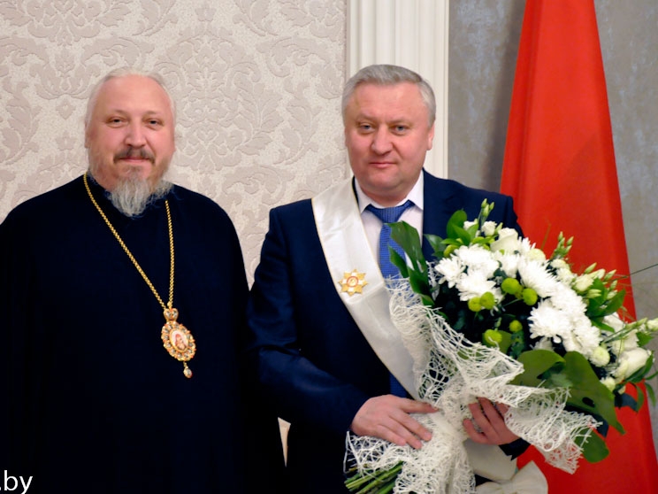 | 4 ФЕВРАЛЯ 2014 (Вторник) 18:43:30 Высокую церковную награду – орден Святой праведной Софии Слуцкой - вручили председателю Гомельского областного исполнительного комитета Владимиру Дворнику. Вручая высокую награду, по благословению Митрополита Минского и Слуцкого Павла, Патриаршего Экзарха всея Беларуси, епископ Гомельский и Жлобинский Стефан поблагодарил Владимира Андреевича за заботу и внимание к вопросам духовно-нравственного и патриотического воспитания граждан области через организацию и проведение совместных мероприятий, а также выразил надежду, что сложившиеся добрые отношения сохранятся в будущем и послужат достижению духовного процветания граждан Гомельской области. За время работы на посту председателя Гомельского облисполкома Владимир Дворник сделал многое для развития и укрепления морально-нравственных и христианских ценностей, оказывал всяческое содействие реализации совместных проектов Православной церкви с государственными органами в области социальной работы и культуры. Было подписано соглашение о сотрудничестве Гомельской епархии с Гомельским облисполкомом. Приоритетными направлениями сотрудничества являются общественная нравственность, воспитание и образование, культура и творческая деятельность, охрана, восстановление и развитие исторического и культурного наследия, здравоохранение, социальное обеспечение, милосердие, благотворительность, поддержка института семьи, материнства и детства, попечение о лицах, находящихся в местах лишения свободы, воспитательная, социальная и психологическая работа с военнослужащими, охрана окружающей среды. Одним из последних и важнейших соглашений является открытие общественной кафедры христианской культуры при ГГУ им. Ф. Скорины. Справка: Орден Святой праведной Софии Слуцкой учрежден определением Высокопреосвященного Филарета, Митрополита Минского и Слуцкого, Патриаршего Экзарха всея Беларуси, и Святого Синода Белорусской Православной Церкви в 2012 году в ознаменование 400-летия преставления святой праведной Софии, княгини Слуцкой. Орденом святой праведной Софии, княгини Слуцкой награждаются церковные и общественные деятели за труды на благо Православия. / sobor.by/ По материалам eparhiya.by. (просмотров 4011) |