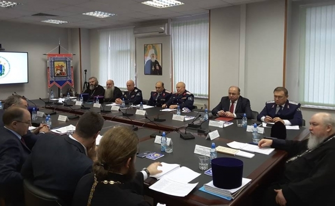 | 30 НОЯБРЯ 2018 (Пятница) 11:57:25 26 ноября в представительстве Волжского казачьего общества "Станица Волжская посольская" в Москве по приглашению заместителя атамана ВКО "Волжское казачье войско" по взаимодействию с Русской Православной Церковью Г.С. Лиманского состоялось заседание Коллегии войсковых священников.Заседание Коллегии возглавил председатель Синодального комитета по взаимодействию с казачеством митрополит Ставропольский и Невинномысский Кирилл. В мероприятии приняли участие: протоиерей Иоанн Гармаш, войсковой священник ВКО "Кубанское казачье войско"; протоиерей Павел Самойленко, войсковой священник ВКО "Терское казачье войско"; протоиерей Андрей Казанцев, войсковой священник ВКО "Енисейское казачье войско"; протоиерей Марк Косолапов, войсковой священник ВКО "Иркутское казачье войско"; протоиерей Максим Миняйло, войсковой священник ВКО "Оренбургское казачье войско"; протоиерей Сергий Нестеров, и.о. войскового священника ВКО "Волжское казачье войско"; протоиерей Роман Витюк, и.о. войскового священника ВКО "Забайкальское казачье войско"; иерей Марк Кравченко, войсковой священник ВКО "Центральное казачье войско"; иерей Константин Насин, войсковой священник ВКО "Уссурийское казачье войско"; иерей Георгий Вардугин, и.о. войскового священника ВКО "Сибирское казачье войско"; протоиерей Георгий Арбузов, заместитель председателя Синодального отдела Белорусской Православной Церкви по взаимодействию с казачеством, руководитель Миссионерского отдела Минской епархии; иерей Евгений Козлов, заместитель председателя Комиссии по делам казачества Митрополичьего округа Русской Православной Церкви в Республике Казахстан; иерей Тимофей Чайкин, ответственный секретарь Синодального комитета; иерей Иоанн Малков руководитель отдела по взаимодействию с епархиями и органами власти, и другие сотрудники Комитета. Открывая встречу, митрополит Кирилл приветствовал духовенство, окормляющее казачество в реестровых обществах и общественных объединениях, подчеркнув более содержательный характер их работы с казачьей молодёжью в последнее время. Его Высокопреосвященство поблагодарил сотрудников Синодального комитета за качественный уровень взаимодействия с Молодёжным отделом Московской городской епархии, благодаря чему был успешно проведён III Объединенный образовательный форум "ДоброЛето-2018". В число участников вошли 200 представителей казачьих молодёжных организаций, действующих в войсковых казачьих обществах России. Владыка Кирилл призвал войсковых священников активнее работать с атаманами ВКО, с должностными лицами, ответственными за взаимодействие с казачеством из аппарата полномочного представителя Президента Российской Федерации в федеральных округах, для того, чтобы сообща решать организационные и финансовые вопросы участия молодых казаков в мероприятиях, организованных Синодальным комитетом по взаимодействию с казачеством. Члены Коллегии рассмотрели вопрос о кадровых изменениях в составе Коллегии, а также подвели предварительные итоги деятельности войсковых священников в 2018 году. Глава Синодального комитета поблагодарил протоиерея Владимира Загаринского, войскового священника, много лет окормлявшего представителей ВКО "Волжское казачье войско", за понесённые труды. Протоиерей Сергий Нестеров по ук