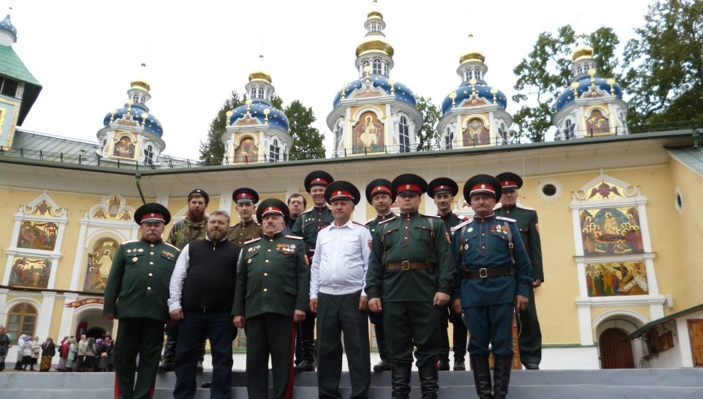 | 9 ОКТЯБРЯ 2017 (Понедельник) 10:35:42 29 сентября – 1 октября состоялась паломническая поездка делегации РОО "Белорусское казачество" в Свято-Успенский Псково-Печёрский монастырь. В поездке приняли участие Председатель Совета старейшин казачий полковник Николай Федорович Мариничев, атаман Минского округа казачий полковник Геннадий Аркадьевич Жуменок, атаман Гомельского областного округа Станислав Александрович Шапоров, казаки Борисовского, Жодинского, Минского отделов, а также член Союзов писателей Беларуси и России, лауреат Премии Президента Республики Беларусь "За духовное возрождение", кавалер медали Пушкина Вячеслав Бондаренко. По пути в монастырь казаки посетили святыню славянской культуры – музей-заповедник "Михайловское", неразрывно связанный с именем Александра Сергеевича Пушкина. Гости осмотрели усадебный дом и парк, полюбовались прекрасными видами, вдохновлявшими великого поэта. В Свято-Успенском Святогорском монастыре белорусы почтили память Александра Сергеевича минутой молчания на его могиле. В Свято-Успенском Псково-Печёрском монастыре паломники провели почти двое суток. Казаки ознакомились с долгой и сложной историей монастыря, основанного в 1473 году и с тех пор ни разу не закрывавшегося. Обитель пережила и революционное лихолетье 1917-18 гг., и нахождение на территории Эстонской Республики (1920-40), и германскую оккупацию (1941-44), и антирелигиозные гонения хрущёвских времен. На протяжении более чем 40 лет Псково-Печёрский монастырь был одним из двух действующих на территории СССР. Для белорусов Псково-Печёрский монастырь имеет особое значение. В его Успенском соборе хранится знаменитая чудотворная икона "Успение Божьей Матери", которая по праву считается "спасительницей Полоцка". Во время Отечественной войны 1812 года перед ней был отслужен молебен, а на следующий день, 20 октября, Полоцк был в ходе тяжёлого боя освобождён от французов войсками графа П.Х.Витгенштейна. В честь этого события в 1827 г. на территории монастыря был воздвигнут Михайловский собор, ныне являющийся главным храмом обители. Кроме того, в августе 1988 – феврале 1992 гг. настоятелем Псково-Печёрского монастыря был архимандрит Павел (Пономарев) – ныне Патриарший Экзарх всея Беларуси, митрополит Минский и Заславский. Таким образом, владыка Павел стал последним наместником монастыря при Советской власти и первым в России. Неудивительно, что в ходе поездки белорусские казаки встретили немало своих земляков-паломников – из Витебска, Полоцка, Лепеля, Гомеля, Минска и других городов. В ходе посещения монастыря казаки побывали также в пещерах, где покоятся свыше 10 тысяч насельников монастыря, в том числе такие знаменитые, как митрополит Вениамин (Федченков), архимандрит Иоанн (Крестьянкин) и другие. Запоминающимся стало посещение Святой Горки, на которой разбит монастырский яблоневый сад и откуда открывается прекрасный вид на звонницу, украшенную колоколами, – подарками Ивана Грозного, Бориса Годунова и Петра Великого. Отдельным пунктом паломнической программы стало посещение келии о.Иоанна (Крестьянкина), в которой он жил с 1967 по 2006 годы. Келейница знаменитого старца Татьяна Сергеевна Смирнова, долгие годы выполнявшая обязанности его письмоводителя, на протяжении часа рассказывала гостям об этом "несвятом святом", чьё имя было известно по всему м