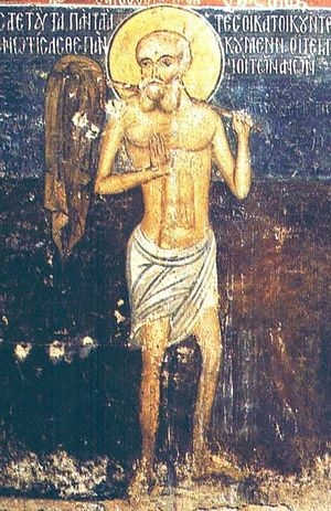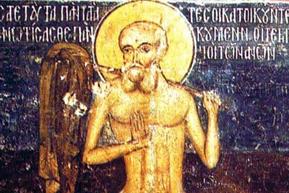 С самой юности преподобный жил, как птица небесная, не имея пристанища, и по несколько дней не ел, не имея на что купить хлеба. Нищему, дрожавшему от холода, он отдал свой синдон, оставшись полунагим.