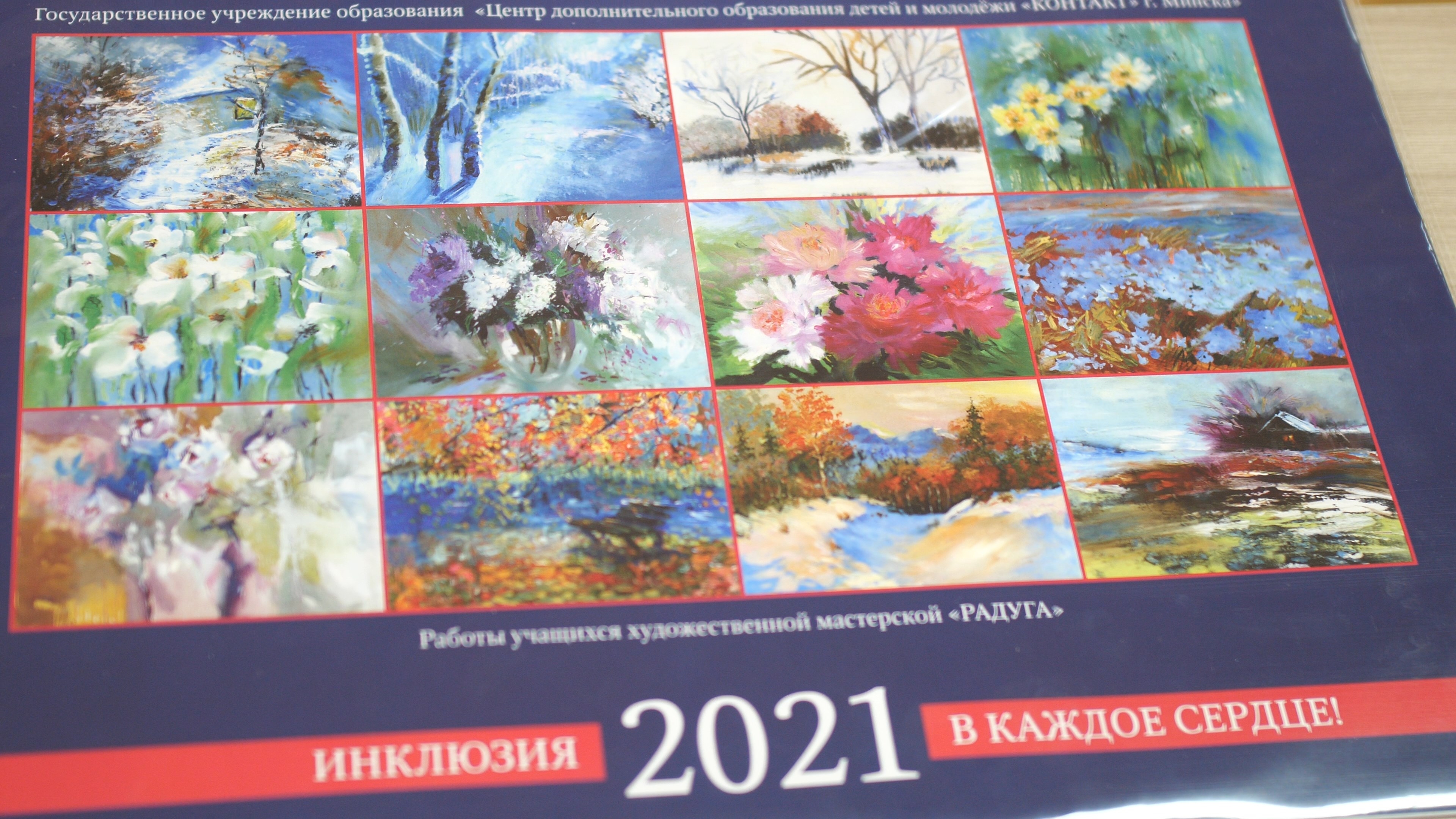 Иллюстрации, созданные воспитанниками инклюзивного объединения по интересам "Художественная мастерская "Радуга", украсили страницы перекидного календаря на 2021 год. Презентация календаря состоялась 30 января в Центре дополнительного образования детей и молодёжи "Контакт" города Минска.