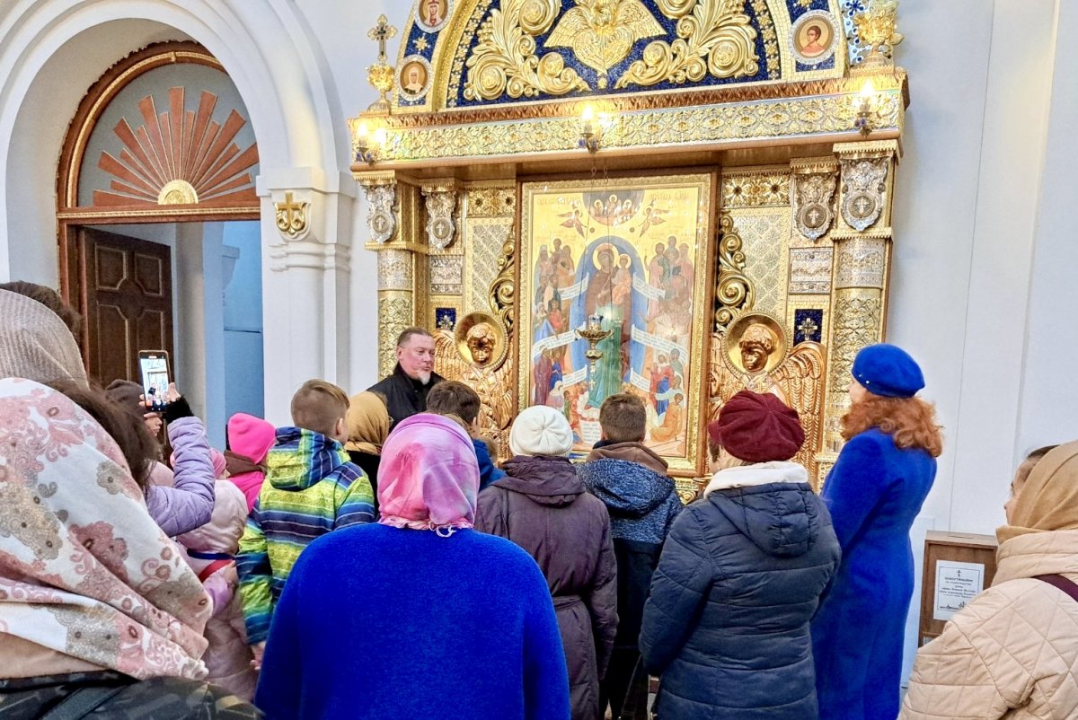 По традиции ребята и их наставники ознакомились с историей прихода, посетили учебный корпус, где проходят занятия воскресной школы. Посмотрели галерею новомучеников и, конечно, посетили собор иконы Божией Матери "Всех скорбящих Радость". Приложились к святыням храма, узнали историю написания некоторых икон.