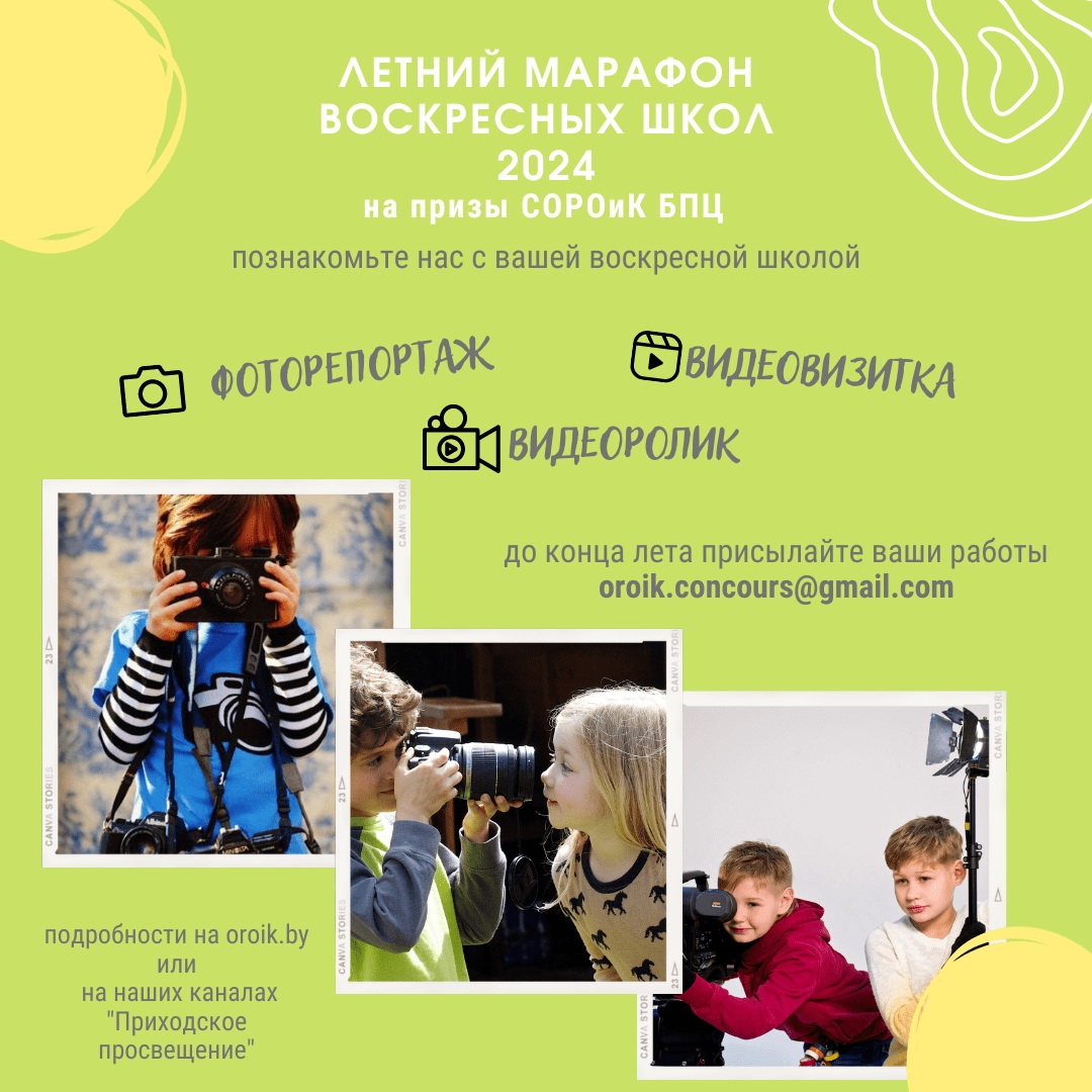 Для участия в конкурсе необходимо создать фоторепортаж, видеовизитку или видеоролик о своей воскресной школе и прислать до 31 августа 2024 года на электронный адрес организаторов oroik.concours@gmail.com с пометкой "Марафон ВШ".