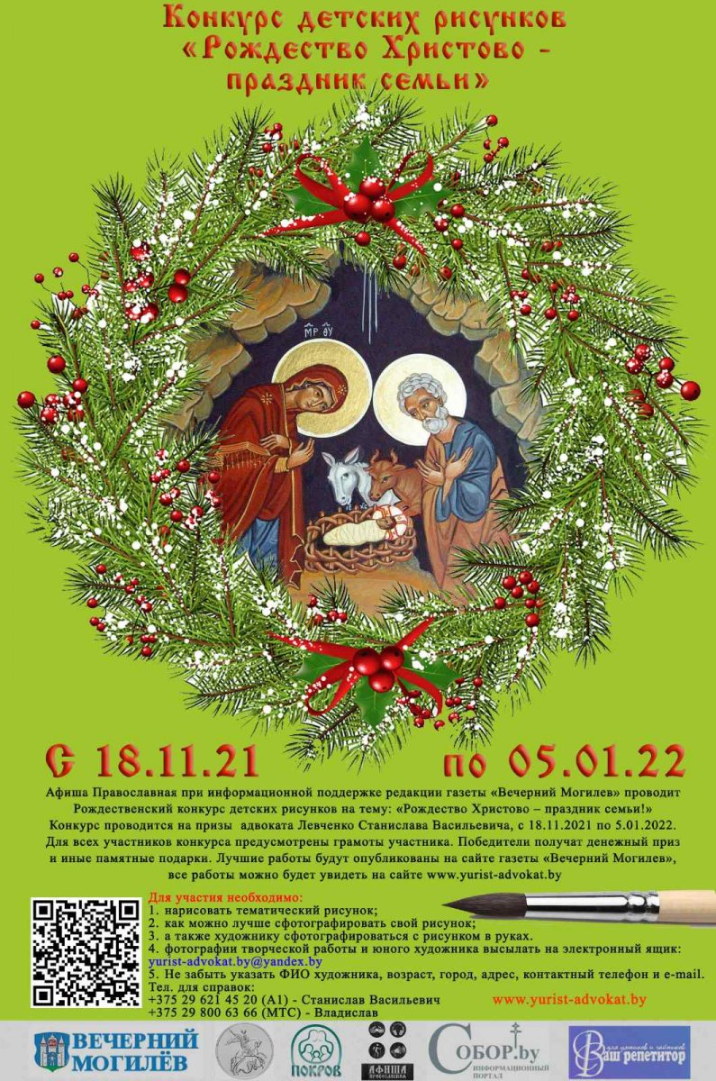 Проект "Афиша Православная" при информационной поддержке редакции газеты "Вечерний Могилев" проводит Рождественский конкурс детских рисунков на тему: "Рождество Христово – праздник семьи!".