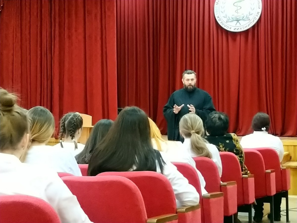 | 6 МАРТА 2019 (Среда) 12:20:14 В Минском государственном медицинском колледже состоялось мероприятие для учащихся "Храм мудрости - сегодня и всегда" с участием руководителя Отдела по делам молодёжи Минской епархии, протодиакона Свято-Петро-Павловского собора Минска Максима Логвинова.Инициаторами мероприятия стали заместитель директора по воспитательной работе колледжа Куликова Т.С. и куратор группы 303 отделения "Лечебное дело" Петрова Т.В. Мероприятие "Храм мудрости – сегодня и всегда" ставило целью подчеркнуть, что именно в душе человека сосредоточено всё самое ценное, важное и вечное. В ходе обсуждения были затронуты также темы семейных ценностей и целомудрия. Об этом и многом другом удалось порассуждать в ходе беседы учащимся с отцом Максимом. По словам организаторов, "отрадно, что диалог-размышление получился глубоким и обоюдно интересным". Мероприятие состоялось в рамках сотрудничества Минского государственного медицинского колледжа с Белорусской Православной Церковью./ sobor.by/ msmc.by (просмотров 1693) |
