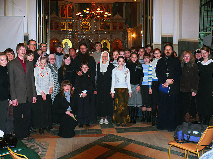| | 17 НОЯБРЯ 2008 (Понедельник) 22:45:42 Протоиерей Артемий Владимиров является настоятелем храма Всех Святых в Красном Селе города Москва, член Союза писателей России. Сегодня в рамках Свято - Михайловских чтений в Доме Милосердия священник провёл мини-беседы с молодёжью о том, как следует себя вести в современном мире. Вначале он рассказал о себе, о своей семье. После лекции батюшка ответил на все вопросы, которыми интересовался зал. Также он рассказал что общего у педагога и поэта, о балах, которые проводятся в России среди православной молодёжи. Завтра отец Артемий в 10:00 выступит в Белорусском государственном лингвистическом университете, в 12:00 – в Минском государственном университете развития образования. Планируется также, что между проведением лекций он даст интервью на «Радио- Минск»/Белорусский православный информационный портал / sobor.by/ Юлия Каптур/ (просмотров 3410) |