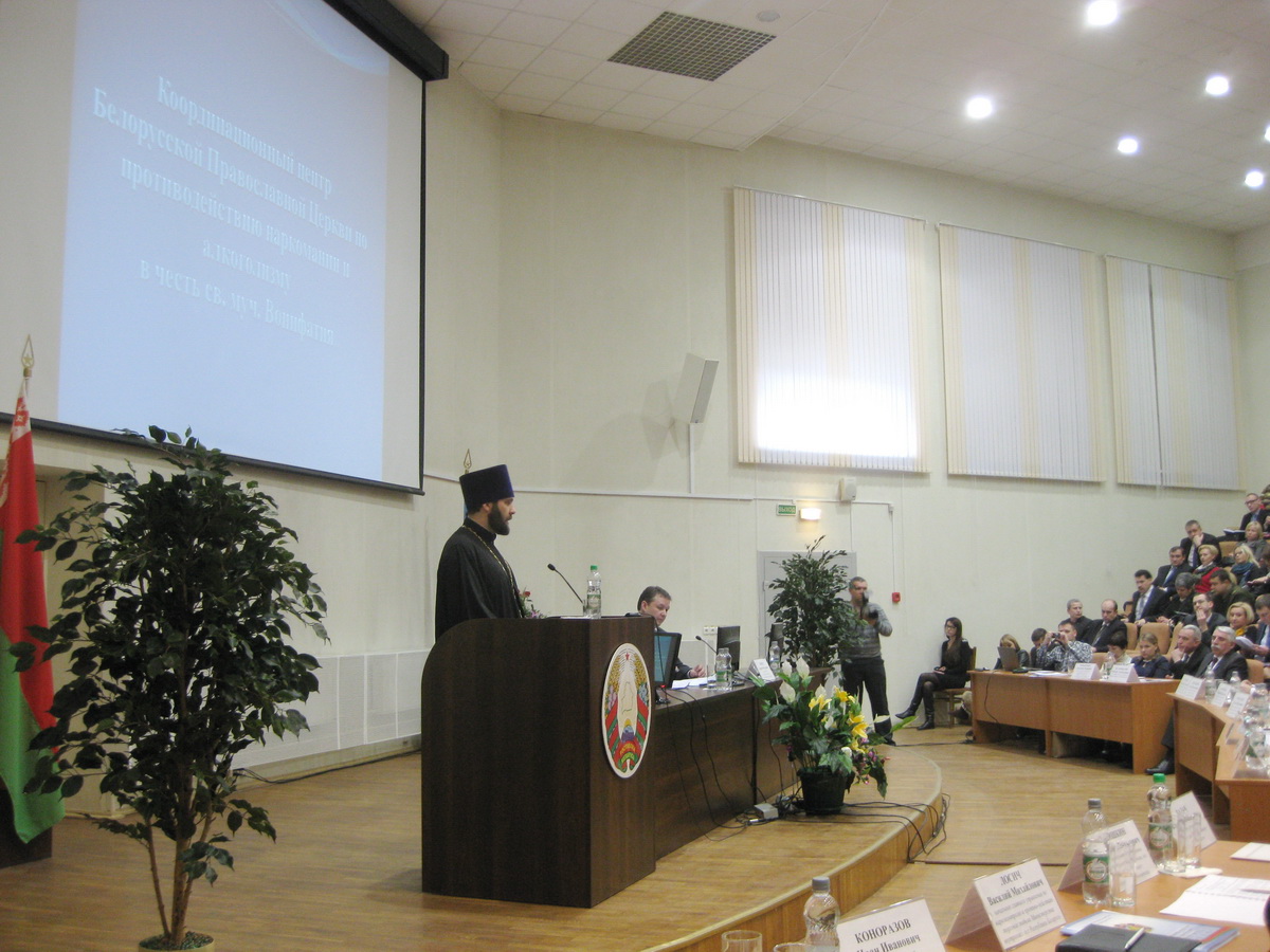 С докладом на тему «Мероприятия по профилактике алкогольной и наркотической зависимости в рамках выполнения «Соглашения между Республикой Беларусь и Белорусской Православной Церковью» перед участниками заседания выступил руководитель Координационного центра БПЦ по противодействию наркомании и алкоголизму в честь мученика Вонифатия протоиерей Дионисий Пясецкий.