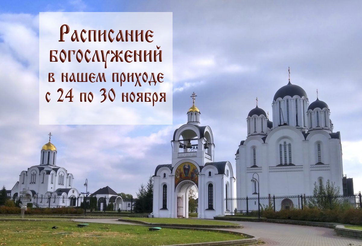 | | 24 НОЯБРЯ 2025 (Понедельник) 11:44:23 Дорогие братья и сестры, приглашаем вас на богослужения в приход иконы Божией Матери "Всех скорбящих Радость" города Минска и публикуем расписание служб на неделю, с 24 по 30 ноября.