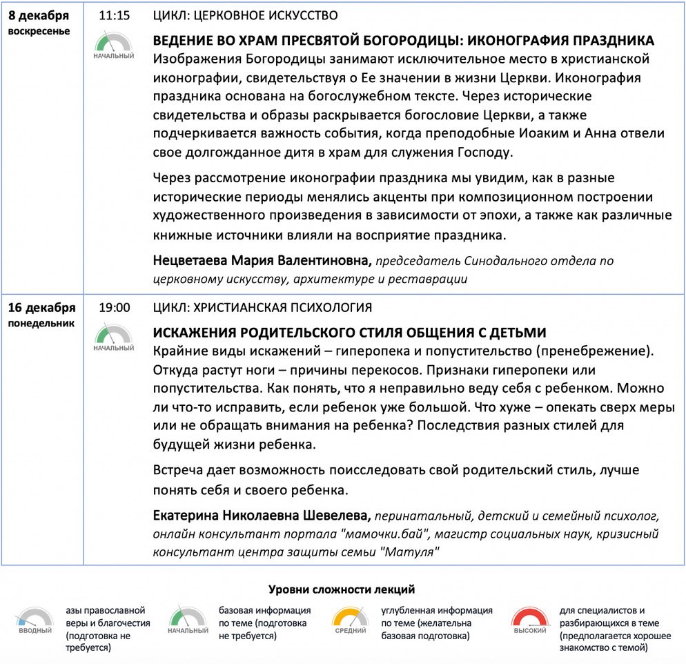 Публикуем расписание лекций курсов "Свет Православия" на первую половину декабря.