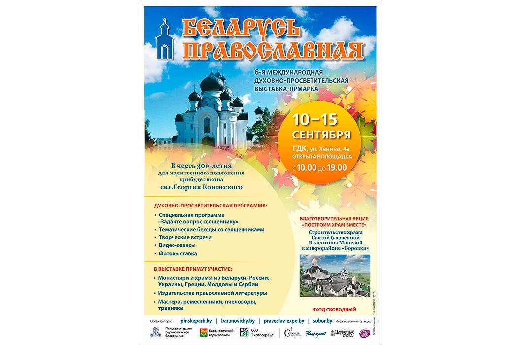 С 10 по 15 сентября в Барановичах пройдёт 6-я духовно-просветительская выставка-ярмарка "Беларусь православная".