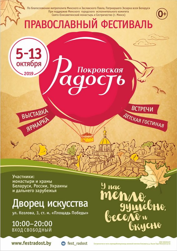 С 5 по 13 октября в самом центре Минска, во Дворце искусства, пройдёт православный фестиваль "Покровская Радость". Он посвящён Покрову Пресвятой Богородицы и Дню матери. Эти два праздника и определили формат предстоящего события.