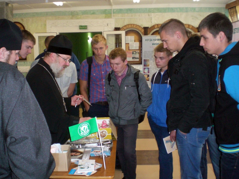| | 24 СЕНТЯБРЯ 2015 (Четверг) 12:04:46 Центр защиты материнства и семейных ценностей Новогрудской епархии организовал в Мирском государственном художественном профессионально-техническом колледже экспозицию "Спасай взятых на смерть!".