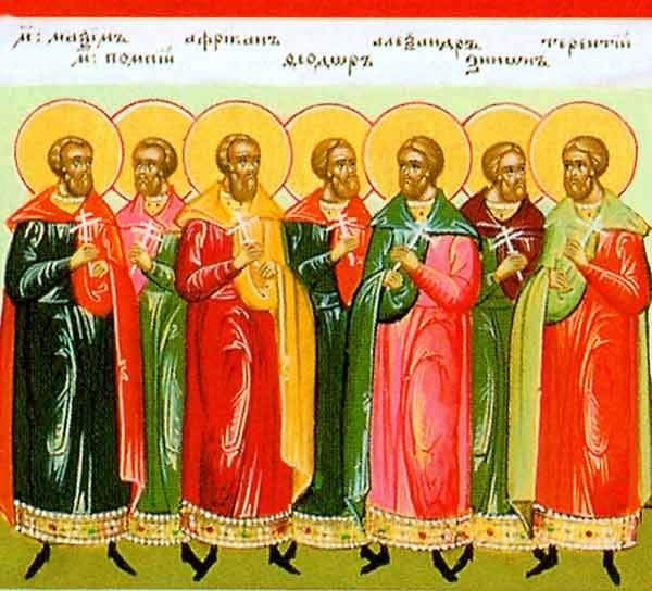 | 26 МАРТА 2014 (Среда) 13:37:20 26 марта Православная Церковь вспоминает святого мученика Терентия и его дружину. Святые пострадали при императоре Декии (249-251). Император издал указ, в котором повелевалось всем подданным приносить жертвы языческим идолам.Когда этот указ получил правитель Африки Фортунатиан, он созвал народ на площади, показал страшные орудия пыток и объявил, что все без исключения должны принести жертвы идолам. Многие, испугавшись мучений, согласились, но сорок христиан во главе со святым Терентием мужественно заявили о своей верности Спасителю. Фортунатиан удивился их смелости и спросил, как они, разумные люди, могут исповедовать Богом Того, Кто был распят иудеями как злодей. В ответ на это святой Терентий смело ответил, что они веруют в Спасителя, добровольно претерпевшего Крестную смерть и в третий день Воскресшего. Фортунатиан понял, что Терентий своим примером воодушевляет других и велел заточить его в темницу вместе с тремя его ближайшими друзьями - Африканом, Максимом и Помпием. Остальных мучеников, в том числе Зинона, Александра и Феодора, Фортунатиан решил принудить к отречению от Христа. Однако ни уговоры, ни страшные мучения не поколебали святых мучеников: их жгли раскаленным железом, поливали раны уксусом, растирали солью, строгали железными когтями. Несмотря на страдания, святые не ослабевали в исповедании Христа и Господь укреплял их. Фортунатиан велел привести страдальцев в храм и еще раз предложил им принести жертву идолам. Мужественные воины Христовы воззвали к Богу: «Боже Всесильный, проливший некогда огонь на Содом за беззаконие его, разори и ныне этот нечестивый храм идольский, ради истины Твоей». Идолы упали с грохотом и рассыпались, а затем разрушился весь храм. Разъяренный правитель приказал казнить их. Мученики, славя Бога, преклонили свои головы под меч палача. После казни 36 мучеников Фортунатиан призвал к себе Терентия, Максима, Африкана и Помпия, показал им казненных и снова предложил принести жертву идолам. Мученики отказались. Правитель наложил на них тяжелые оковы и приказал морить в темнице голодом. Ночью Ангел Господень снял с мучеников оковы и напитал их. Наутро стража нашла святых бодрыми и полными сил. Тогда Фортунатиан приказал волхвам и заклинателям навести в темницу змей и всяких гадов. Стражи через отверстие в крыше заглянули в темницу и увидели невредимых мучеников, которые молились, а змеи ползали у их ног. Когда заклинатели, исполняя приказание, открыли двери темницы, змеи, не слушая заклинаний, бросились на них и стали жалить. Разъяренный Фортунатиан повелел обезглавить святых мучеников. Христиане взяли их святые тела и погребли с честью за городом. / sobor.by/ patriarchia.ru (просмотров 6184) |