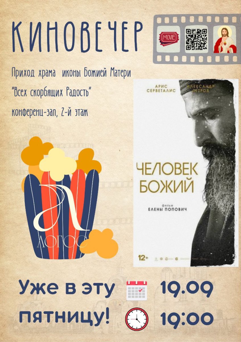 | | 19 СЕНТЯБРЯ 2025 (Пятница) 15:03:49 19 сентября молодежно-просветительское объединение «Логос» прихода иконы Божией Матери «Всех скорбящих Радость» города Минска приглашает на встречу и просмотр фильма «Человек Божий».