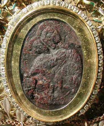 Икона Божией Матери Жировицкая явилась в 1470 году в местечке Жировицы Гродненского края. В лесу, принадлежавшем православному литовскому вельможе Александру Солтону, пастухи увидели необыкновенно яркий свет, проникавший сквозь ветви грушевого дерева, стоявшего над ручьем под горой. Пастухи подошли ближе и увидели на дереве небольшую икону Божией Матери в лучезарном сиянии. Пастухи с благоговением взяли икону и отнесли к Александру Солтону. Александр Солтон не придал особого значения сообщению пастухов, но икону все-таки взял и запер в ларец. На следующий день к Солтону пришли гости, и хозяин захотел показать им находку. К своему удивлению, он не обнаружил иконы в ларце, хотя незадолго до этого видел ее. Через некоторое время пастухи снова обрели икону на том же месте и опять отнесли ее Александру Солтону. На этот раз он отнесся к иконе с большим благоговением и дал обет соорудить на месте явления церковь в честь Пресвятой Богородицы. Около деревянного храма вскоре появилось селение и образовался приход. Около 1520 года храм совершенно сгорел, несмотря на усилия жителей потушить пожар и спасти икону. Все думали, что она погибла. Но однажды крестьянские дети, возвращаясь из школы, увидели чудное видение: Дева необыкновенной красоты в лучезарном сиянии сидела на камне у сгоревшего храма, а в руках у Нее была икона, которую все считали сгоревшей. Дети не осмелились подойти к Ней, но поспешили рассказать о видении родным и знакомым. Все приняли рассказ о видении за Божественное откровение и вместе со священником отправились к горе. На камне у зажженной свечи стояла Жировицкая икона Божией Матери, нисколько не пострадавшая от огня. На время икону поставили в доме священника, а камень был огорожен. Когда построили каменный храм, туда, поставили чудотворную икону. Впоследствии около храма возник мужской монастырь. Его братство возглавило борьбу за Православие против унии и латинства. В 1609 году монастырь был захвачен униатами и находился в их руках до 1839 года. Во все это время Жировицкая икона Божией Матери пользовалась почитанием и униатов, и католиков. В 1839 году монастырь был возвращен православным и стал первым местом восстановления православного Богослужения в западнорусском крае. Во время первой мировой войны Жировицкую икону Божией Матери перевезли в Москву, а в начале 20-х годов она была возвращена в обитель. Ныне она находится в соборе в честь Успения Пресвятой Богородицы Жировицкого монастыря Минской епархии и глубоко почитается за ее благодатную помощь. Икона вырезана на камне размером 43х56 мм.