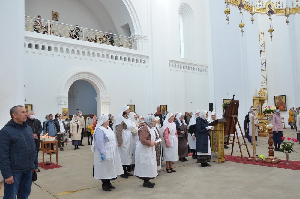 После праздничной Литургии в Радосте-Скорбященском соборе, которую возглавил настоятель прихода протоиерей Игорь Коростелёв, состоялось принятие двух новых сестёр в ряды приходского сестричества во имя святой преподобной Евфросинии Полоцкой. Отец Игорь благословил каждую из сестёр и вручил им белые косынки. Он также поблагодарил всех сестёр за их самоотверженный труд, пожелал здоровья и крепости духовной в несении нелёгкого и очень ответственного послушания.