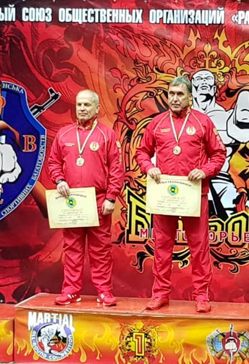 | | 5 ДЕКАБРЯ 2018 (Среда) 13:03:26 Поздравляем белорусских спортсменов - на прошедшем 2 декабря в Харькове XII чемпионате мира по боевому многоборью белорусские мастера показали снова выдающийся результат. Три золота и серебро завоевали Петр Калинин и Николай Герасименко.