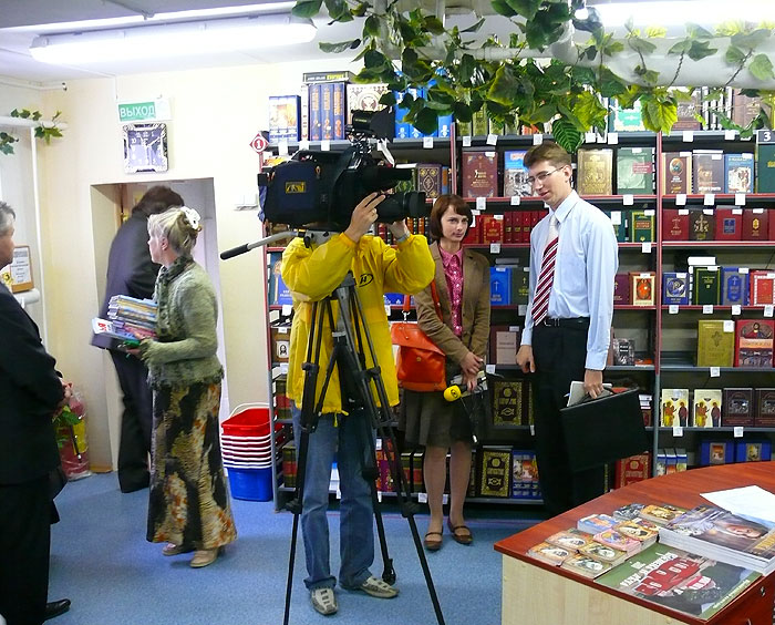 Редактор Издательства Виктор Попов представил предстоящие мероприятия в рамках «Дня письменности», которые пройдут в начале сентября в Борисове, на которых важное место займёт православная книжная продукция. Основные новинки Издательства будут удостоены высоких государственных наград. Вячеслав Бобков, директор фестиваля современной христианской музыки «Благовест», партнёра ИБЭ, рассказал о «Празднике духовной музыки», который состоится 13 сентября в рамках празднования «Дня города» у стен минской ратуши. Вячеслав Григорьевич также представил серию своих музыкальных сборников «Зажги свою свечу» и музыкальных компакт-дисков со своими произведениями. Ольга Морокова, режиссёр, руководитель кино-видеоотдела Издательства рассказала об издании серии фильмов-участников православных кинофестивалей России и Беларуси. Была также представлена серия иллюстрированных рассказов для детей о святых угодниках Божих. На презентации присутствовали представители телекомпании ОНТ, 1-го канала белорусского радио, «Народной газеты», агентства «Белта» и др. СМИ. (просмотров 2473)