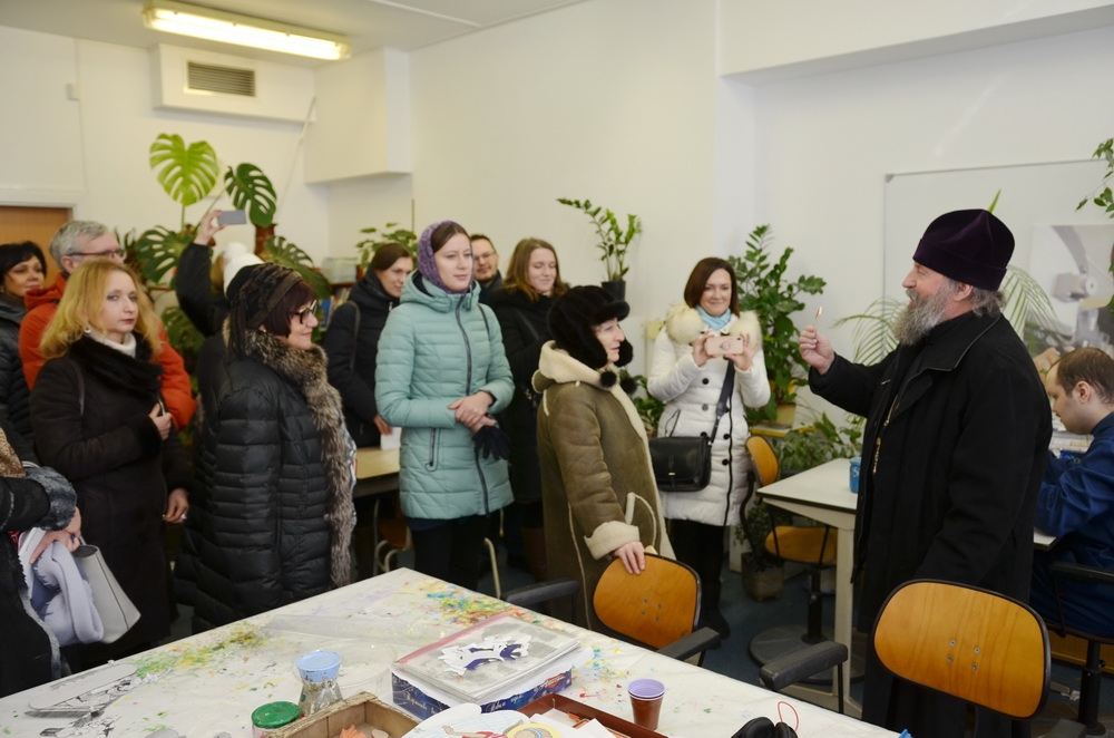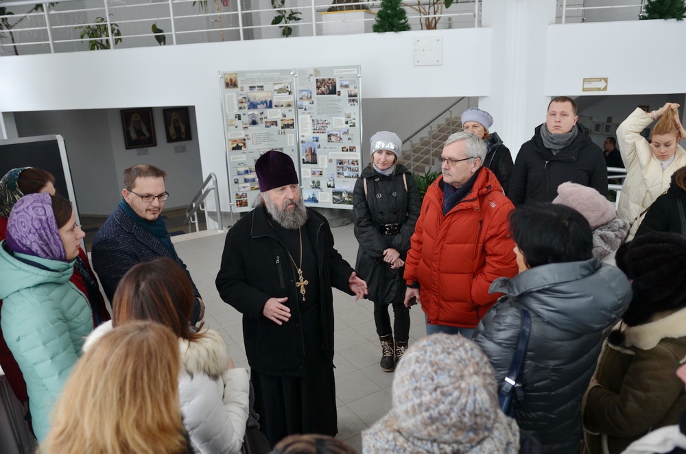 Настоятель провёл подробную экскурсию по приходу, познакомил с работой Социальных мастерских для людей с умственными и физическими ограничениями, Восточно-Европейского бюро телевизионного канала "Союз". Экскурсоводы посетили собор иконы "Всех скорбящих Радость", Свято-Евфросиниевскую церковь, сад "Надежды".