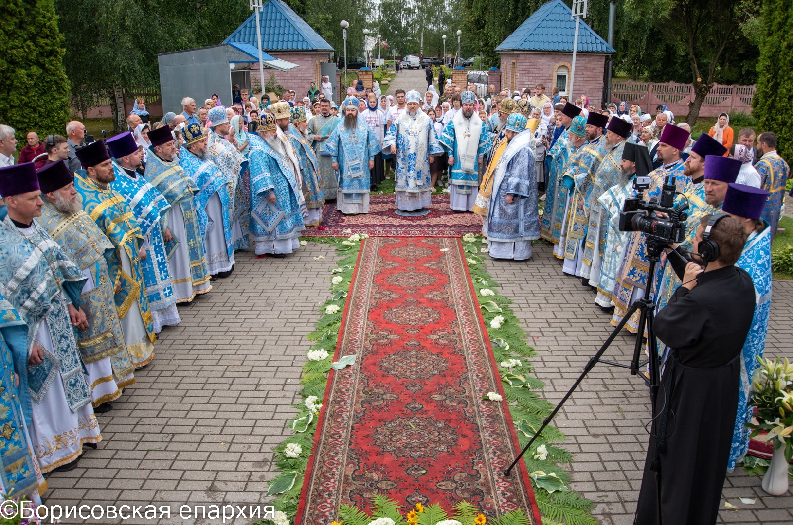 | 5 ИЮЛЯ 2024 (Пятница) 19:43:41 4 июля 2024 года, в день почитания иконы Божией Матери "Марьиногорская", состоялись торжества, посвящённые чтимому образу.Праздничную Божественную литургию в кафедральном соборе святого благоверного князя Александра Невского города Марьина Горка возглавил архиепископ Гомельский и Жлобинский Стефан в сослужении архиепископа Гродненского и Волковысского Антония, епископа Бобруйского и Быховского Серафима, епископа Туровского и Мозырского Леонида, епископа Молодечненского и Столбцовского Павла, епископа Лидского и Сморгонского Порфирия, епископа Борисовского и Марьиногорского Амвросия, епископа Пинского и Лунинецкого Георгия, епископа Несвижского Авксентия, викария Патриаршего Экзарха всея Беларуси. Архипастырям сослужили: секретарь Борисовской епархии, благочинный Борисовского городского церковного округа, настоятель прихода храма Рождества Христова Борисова протоиерей Александр Вербило; секретарь Борисовской епархии, настоятель храма святого благоверного князя Димитрия Донского в Борисове протоиерей Сергий Башкиров; старший духовник Борисовской епархии, благочинный Крупского церковного округа, настоятель храма святителя Николая Чудотворца города Крупки протоиерей Николай Гмир; почетный настоятель прихода кафедрального собора святого благоверного князя Александра Невского города Марьина Горка протоиерей Александр Целков; благочинные церковных округов Борисовской епархии, а также прибывшие на праздник гости в священном сане, духовенство Борисовской епархии и клирики кафедрального собора. Диаконский чин возглавил клирик Свято-Духова кафедрального собора Минска протодиакон Николай Авсиевич. Богослужебные песнопения исполнил хор кафедрального собора под управлением Анастасии Целковой. За богослужением молилась настоятельница женского монастыря в честь святого апостола и евангелиста Иоанна Богослова в деревне Домашаны Смолевичского района игумения Саломия (Овчинникова). На богослужении присутствовали председатель Пуховичского районного Совета депутатов Климович Мария Владимировна, военнослужащие 5-й бригады специального назначения. Трансляция богослужения велась на официальном YouTube канале Белорусской Православной Церкви и телеканале "Союз". После сугубой ектении архиепископ Гомельский и Жлобинский Стефан вознес молитву о восстановлении мира. Проповедь перед Причастием произнес настоятель кафедрального собора святого благоверного князя Александра Невского иерей Григорий Целков. По заамвонной молитве архипастыри и священнослужители совершили славление Пресвятой Богородице. По окончании богослужения епископ Амвросий поздравил прибывших на торжества архипастырей, священнослужителей и благочестивых мирян с праздником и обратился со словом назидания. На приходской территории после богослужения была организована совместная трапеза для всех гостей из разных уголков Борисовской епархии. Также прозвучали музыкальные произведения в исполнении военного духового оркестра. *** Согласно летописям Новоселковской Покровской церкви и Марьиногорской церкви Игуменского уезда, в урочище Марьина Горка издревле особо почиталась икона Божией Матери. Местное предание гласит, что чудотворный образ Богоматери явился некоему Исидору, жителю деревни Лядцев во время т