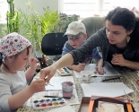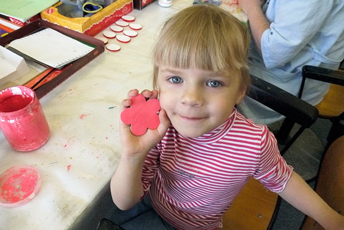 - В наши мастерские довольно часто приходят совсем крошечные дети. В первую очередь, конечно, их завораживает красочность и необычность происходящего. Это как заглянуть за кулисы в театре. Ты выбираешь игрушку в магазине, играешь, а здесь вот оно таинство появления игрушки на свет. Или ты привычно ставишь свечу в храме, а, оказывается, есть целый станок, который выпускает эту свечу на свет. В наш век потребительской психологии это очень важно, - рассказывает руководитель социальных мастерских Марина Кравцова. - В ходе даже небольшого мастер-класса, ребёнок начинает чувствовать себя творцом, созидателем, у него появляется чувство удовлетворения от труда. Но даже не это главное. Главное то, что дети, порой впервые здесь видят людей с ограниченными возможностями. Сегодня, к примеру, пятилетняя девочка, пристально всматриваясь в нашего Пашу, тихо спросила: "А почему у этого дяди на ноге шишечка?". Никакие слова не научат ребёнка милосердию, кроме самого милосердного дела по отношению к ближнему. У детей вера живая, жизненная, они смотрят на нас, взрослых и учатся у нас.