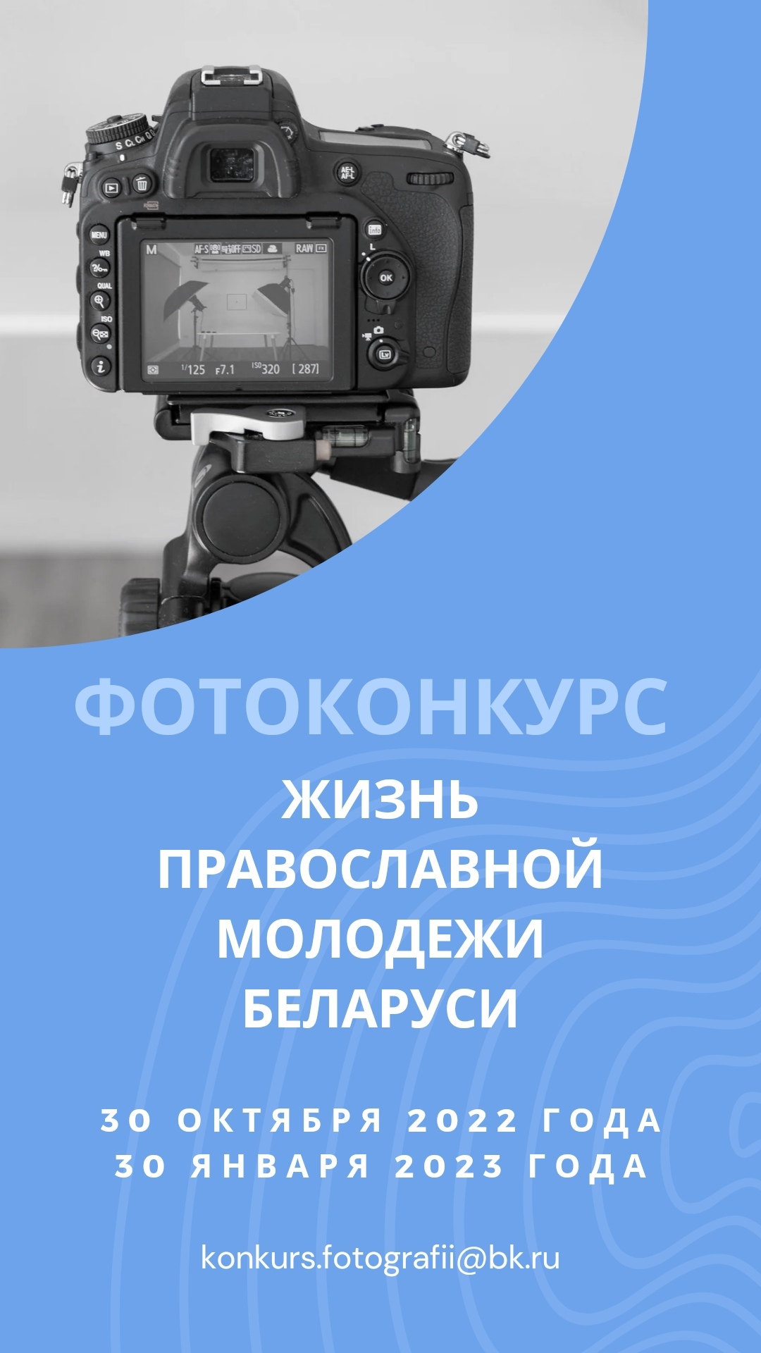 | | 31 ОКТЯБРЯ 2022 (Понедельник) 10:29:27 С 30 октября по 30 января 2023 года пройдет конкурс фотографий "Жизнь православной молодежи Беларуси" на призы Синодального отдела по делам молодежи БПЦ.