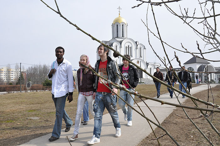 | | 31 МАРТА 2010 (Среда) 18:17:45 Слушатели курса русского языка Индустриально-педагогического колледжа филиала Республиканского Института профессионального образования побывали на экскурсии в православном приходе иконы Божией Матери «Всех скорбящих Радость». Мероприятие прошло в рамках изучения курса русского языка и традиционных религий на территории Беларуси. Инструктор учебных социальных мастерских, которые находятся на территории храма, Ирина Савенок, показала мастерские, где трудятся люди с ограниченными физическими и психическими возможностями, действующую церковь в честь святой преподобной Евфросинии Полоцкой и колокольню, где каждый смог почувствовать себя в роли звонаря. Планируется, что подобные экскурсии станут традиционными/ sobor.by/Юлия Каптур (просмотров 2354) |