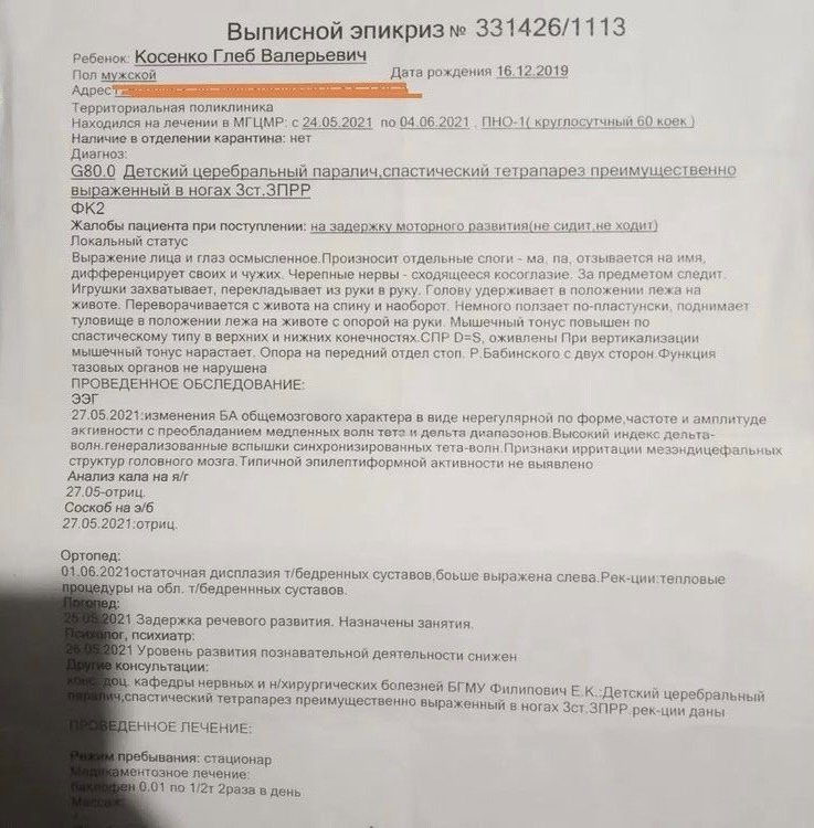 "После операции СДР Глеба ждет несколько курсов реабилитации, в ФОЦ " Адели" очень нужна Ваша помощь: репосты, лайки, Ваши переводы, любая сумма - очень помогает ❤".