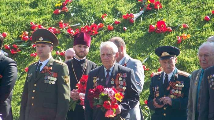 | | 10 МАЯ 2011 (Вторник) 11:00:00 Священнослужители Лиды приняли участие в митинге, посвящённом Дню Победы. Благочинный Лидского округа протоиерей Ростислав Соловьёв поздравил всех присутствовавших ветеранов с великим праздником, поблагодарил за самоотверженный подвиг, пожелал крепости духа, неугасающей надежды и мирных лет жизни. Особое поздравление в этот день было адресовано женщинам, т. к. в этом году празднование Дня Победы совпало с Неделей жен-мироносиц, международным христианским женским днём. «Мироносицами, - отметил благочинный, - можно назвать и тех, кто, будучи хрупкими девушками, женщинами, сражался за наше настоящее и будущее, за мир во всём мире».