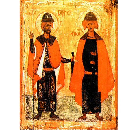 | 6 АВГУСТА 2013 (Вторник) 12:05:51 6 августа Православная Церквоь вспоминает святых благоверных князей-страстотерпцев Бориса и Глеба. Святые князья (в святом Крещении - Роман и Давид) - первые русские святые, канонизированные как Русской, так и Константинопольской Церковью. Они были младшими сыновьями святого равноапостольного князя Владимира (+ 15 июля 1015). Родившиеся незадолго до Крещения Руси святые братья были воспитаны в христианском благочестии. Старший из братьев - Борис получил хорошее образование. Он любил читать Священное Писание, творения святых отцов и особенно жития святых. Под их влиянием святой Борис возымел горячее желание подражать подвигу угодников Божиих и часто молился, чтобы Господь удостоил его такой чести.Святой Глеб с раннего детства воспитывался вместе с братом и разделял его стремление посвятить жизнь исключительно служению Богу. Оба брата отличались милосердием и сердечной добротой, подражая примеру святого равноапостольного великого князя Владимира, милостивого и отзывчивого к бедным, больным, обездоленным. Еще при жизни отца святой Борис получил в удел Ростов. Управляя своим княжеством, он проявил мудрость и кротость, заботясь прежде всего о насаждении Православной веры и утверждении благочестивого образа жизни среди подданных. Молодой князь прославился также как храбрый и искусный воин. Незадолго до своей смерти великий князь Владимир призвал Бориса в Киев и направил его с войском против печенегов. Когда последовала кончина равноапостольного князя Владимира, старший сын его Святополк, бывший в то время в Киеве, объявил себя великим князем Киевским. Святой Борис в это время возвращался из похода, так и не встретив печенегов, вероятно, испугавшихся его и ушедших в степи. Узнав о смерти отца, он сильно огорчился. Дружина уговаривала его пойти в Киев и занять великокняжеский престол, но святой князь Борис, не желая междоусобной распри, распустил свое войско: «Не подниму руки на брата своего, да еще на старшего меня, которого мне следует считать за отца!» Однако коварный и властолюбивый Святополк не поверил искренности Бориса; стремясь оградить себя от возможного соперничества брата, на стороне которого были симпатии народа и войска, он подослал к нему убийц. Святой Борис был извещен о таком вероломстве Святополка, но не стал скрываться и, подобно мученикам первых веков христианства, с готовностью встретил смерть. Убийцы настигли его, когда он молился за утреней в воскресный день 24 июля 1015 года в своем шатре на берегу реки Альты. После службы они ворвались в шатер к князю и пронзили его копьями. Любимый слуга святого князя Бориса - Георгий Угрин (родом венгр) бросился на защиту господина и немедленно был убит. Но святой Борис был еще жив. Выйдя из шатра, он стал горячо молиться, а потом обратился к убийцам: «Подходите, братия, кончите службу свою, и да будет мир брату Святополку и вам». Тогда один из них подошел и пронзил его копьем. Слуги Святополка повезли тело Бориса в Киев, по дороге им попались навстречу два варяга, посланных Святополком, чтобы ускорить дело. Варяги заметили, что князь еще жив, хотя и едва дышал. Тогда один из них мечом пронзил его сердце. Тело святого страстотерпца князя Бориса тайно привезли в Вышгород и положили в храме во имя святого Василия Великого. После этого Святополк столь же в