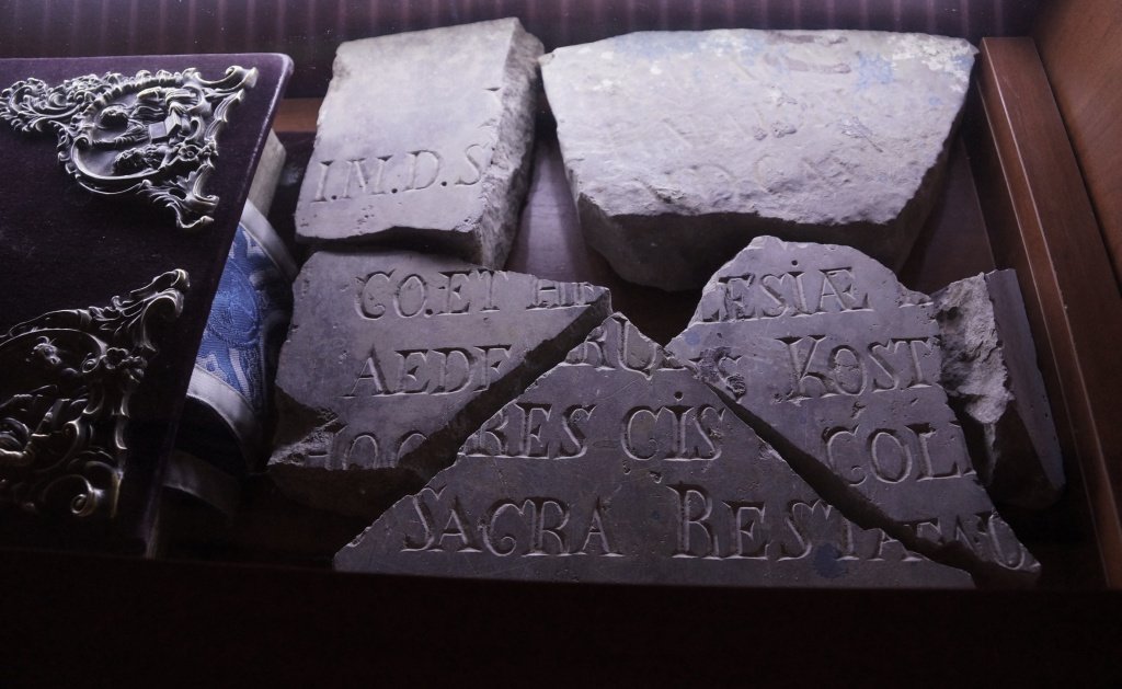 Сегодня каждый паломник и турист может увидеть образцы этого древнего кирпича, штукатурки, гвоздей, черепицы "хвост бобра", куски мраморной плиты с именем фундатора церкви, старинное храмовое Евангелие и даже… ядра шведов, которыми обстреливали храм. Все это с любовью собрано в экспозицию под стеклом. А отец Кирилл и его супруга матушка Христина – специалист по охране культурного наследия и туризму – увлекательно расскажут о том, что здесь было, есть и будет.
