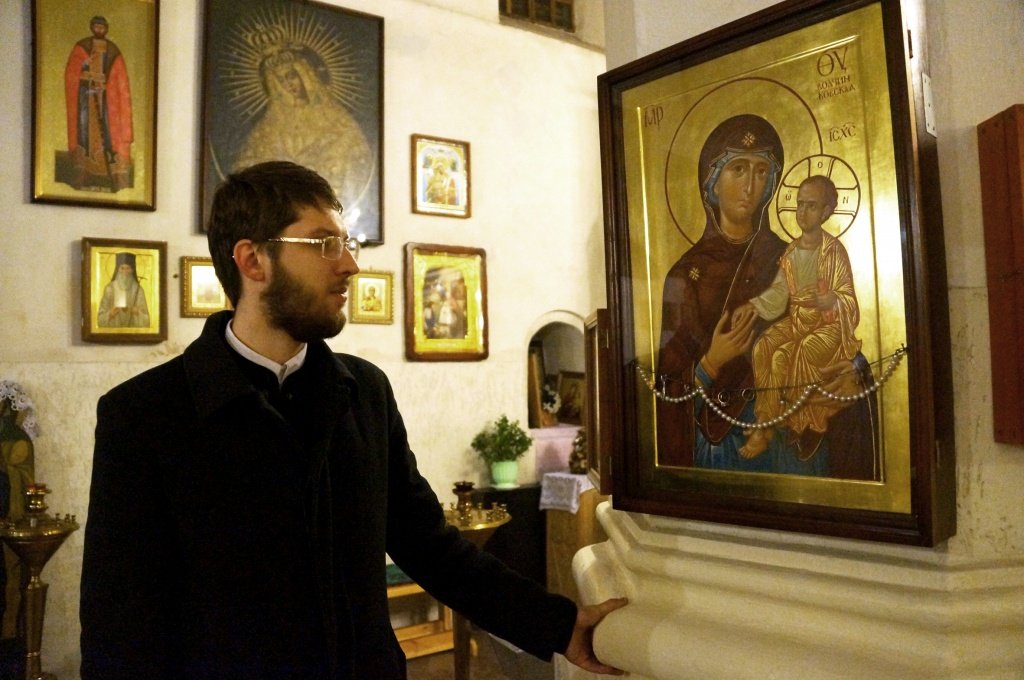– До 1817 года в стенах церкви был потайной ход вокруг всего храма, – удивляет нас отец Кирилл. – Под храмом – два склепа, а главный вход в старину защищался тяжелыми входными воротами и герсой – железной решеткой, опускавшейся на цепях из ниши, сделанной в стене.