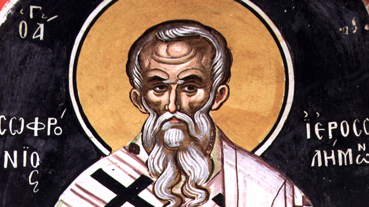 Святитель Софроний, Патриарх Иерусалимский. Архипастырь Церкви Христовой, Первосвятитель Церкви Святого града Иерусалима первой половины VII столетия. Уроженец сирийского Дамаска, будущий святитель Софроний с юности избрал монашеский путь служения Господу и Его Церкви. Получив прекрасное философское и богословское образование, он отправился на Святую землю, где в Иерусалиме познакомился с известным старцем Иоанном Мосхом, став его учеником и духовным чадом, а затем принял от него монашеский постриг. Вот как Житие святителя Софрония описывает эти годы его служения:
