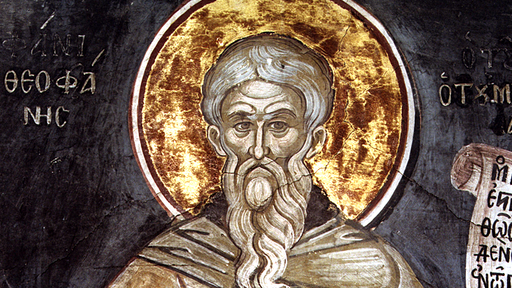 Преподобный Феофан Исповедник, Сигрианский. Великий православный монах и просветитель VIII-IX столетий, времён борьбы православных христиан с еретиками-иконоборцами, которые одно время заняли верховенствующие позиции в Ромейском царстве (Византии). В молодости будущий святой старец женился, но, желая принять монашество, сохранил с супругой целомудренные отношения. Житие преподобного Феофана так описывает его уход из мирской жизни и дальнейшее служение: