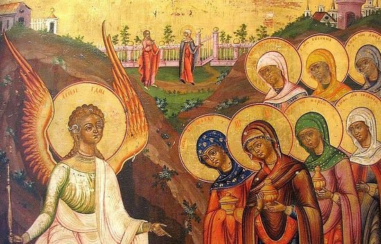 | 16 МАЯ 2021 (Воскресенье) 22:29:34 16 мая отмечается православныйженский день – день Жен-мироносиц. В третью неделю после Пасхи православная Церковь прославляет подвиг святых Жен-мироносиц.Этот праздник посвящен обычным женщинам – Христовым ученицам, неотступно следовавшим за своим Учителем и не оставившим Его даже в те минуты, когда большинство апостолов попросту разбежались. И событие, воспоминаемое в этот день, тоже, на первый взгляд, самое обыденное – не успев совершить погребальный обряд над умершим Спасителем из-за приближавшейся субботы, женщины на третьи сутки после Его крестной смерти поспешили к гробу. С собою они несли миро – дорогое пахучее масло – и шли к могиле помазать тело Иисуса. Верили ли они в то, что снова увидят Господа живым? Вряд ли. Как и для остальных учеников, арест, распятие и смерть Иисуса были для них своеобразным финалом – с казнью Христа эти хрупкие женщины утратили значительный смысл дальнейшего существования. Конечно, они продолжали жить ради своих семей, но жить так, как раньше, полноценно, каждый день общаясь с Учителем, уже было невозможно. И все же любовь – безусловная и безграничная – подняла мироносиц среди ночи и заставила бежать к месту погребения Христа. Сердце словно говорило им: "Спешите, и вы увидите то, что радикально изменит вашу жизнь, сделает ее более осмысленной и глубокой, чем ранее – в минуты наибольшей радости". Огромная чистая вера святых женщин была вознаграждена. Когда они приблизились к могиле, только лишь тут вспомнив, что вход в погребальную камеру завален тяжелым камнем, то увидели, что пещера открыта. Едва преодолевая охватившее их оцепенение, они заглянули вовнутрь и встретили ангела, который говорил им, что Тот, Кого ищут мироносицы, воскрес и ждет их в Галилее. Скорее всего, другой на месте этих женщин смутился бы, решив, что все виденное им – галлюцинации и плод воспаленного воображения. Но ученицы Христовы поверили сразу и безо всякого сомнения – получив благую весть, они бросились обратно в город, к апостолам, которые сидели в доме и там переживали обрушившееся на них горе. Еще больше вера женщин укрепилась, когда на обратной дороге они увидели самого воскресшего Господа. У гроба осталась лишь Мария Магдалина, которая либо пришла не со всеми, либо просто решила побыть наедине, чтобы лучше понять случившееся. Она еще не до конца осознала величие этого момента, и когда перед ней появился человек, подумала, что перед нею садовник, и стала спрашивать у него, куда исчезло тело Учителя. Но садовник назвал ее по имени, причем сделал это так, как делал только один Человек на земле. Перед нею стоял Сам Христос – живой, воскресший, реальный! Радости женщины не было предела – она своими глазами видела Того, Кого еще пару дней назад безутешно оплакивала вместе с другими ученицами. Потом Господь явился остальным – апостолам, ученикам, другим Своим спутницам, которые все три года Его проповеди были с Ним. Но первым радостную новость о Воскресении Спасителя узнали именно они, мироносицы – женщины, которые не побоялись ни преследования старейшин, ни возможной грубости римской охраны, которая до момента явления ангела стерегла гроб Спасителя, ни других опасностей, подстерегающих человека ночью. Ученицами двигала любовь – та самая любовь, которой их учил Господь, и которая не ведает ни