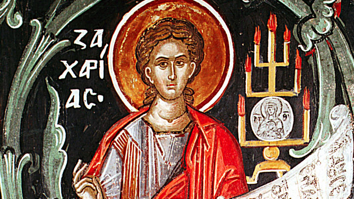Пророк Захария Серповидец. Ветхозаветный святой из числа 12 малых пророков, уроженец колена Левиина, живший в VI столетии до Рождества Христова. В Священном Писании – Книге святой – Захария именуется главой священнического рода, а в одном из богослужебных песнопений – "зрителем премирных видений".