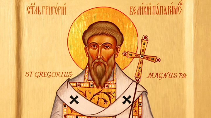 Святитель Григорий Двоеслов, папа Римский. Этот святой родился в Риме около 540 года от Рождества Христова. Получив блестящее образование, он мог сделать государственную карьеру, но вёл скромную жизнь и стремился к иночеству. После смерти отца Григорий построил шесть монастырей в Сицилии, а в Риме основал монастырь во имя Андрея Первозванного, где и принял иноческий сан. Святитель долго трудился в Византии, где написал "Толкование на книгу Иова", оказавшее влияние на многих богословов и поэтов, а в 590 году был избран на Римскую кафедру.