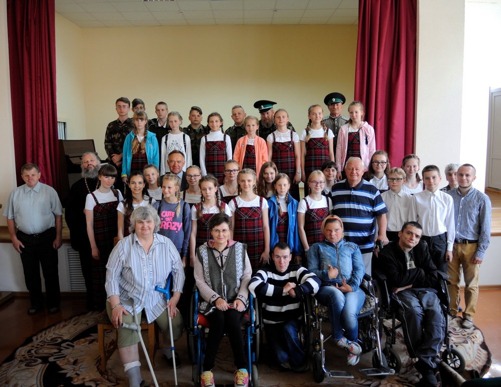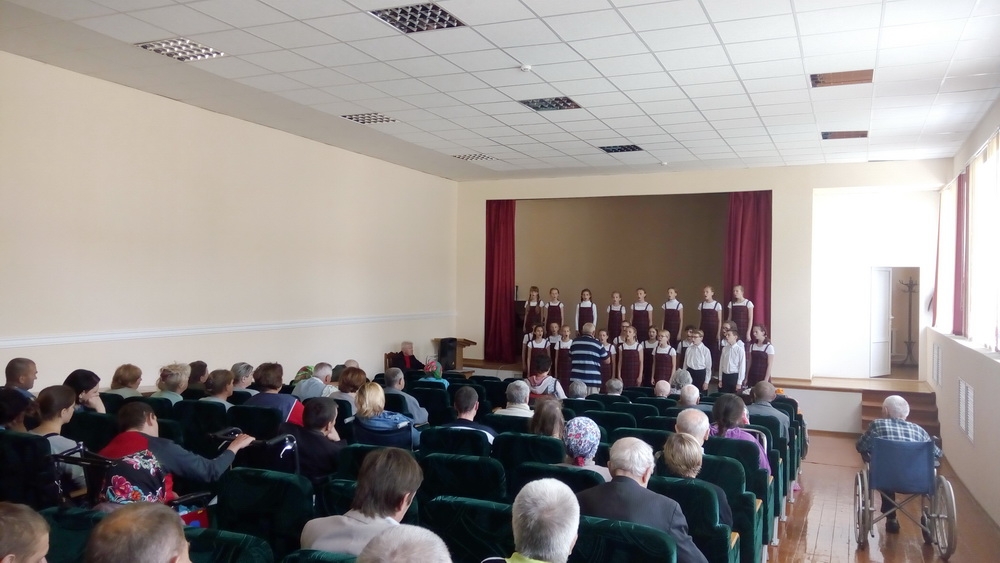 Перед насельниками интерната выступил детский образцовый хор "Радуга" из г. Барановичи под руководством заслуженного деятеля искусств Ганькова Николая Филипповича, прозвучали военные и популярные песни, духовные песнопения. После концерта каждый житель дома-интерната получил от детей сладкий подарок - домашнюю выпечку.