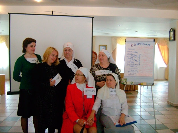 | 4 ИЮНЯ 2014 (Среда) 21:17:23 Новые методы и формы работы с молодёжной аудиторией были представлены в рамках заседания Совета сестричеств Белорусского Экзархата. Старшие епархиальные сестры познакомились с формами активного обучения в рамках презентации учебного модуля «Мир дому». В течение трёх дней была продемонстрирована работа в разных форматах : лекции, дискуссии, семинары, семинары-практикумы, тематические уроки на тему семьи и профилактики негативных явлений в семьях. Представленные формы и методы подачи информации сестры могут использовать в работе с разными целевыми аудиториями: детьми, подростками, молодыми семьями. Было проведено обзорное знакомство с пятью предложенными в учебном модуле «Мир дому» семинарами-практикумы. Темы «Введение в тему домашнего насилия» и «Оказание помощи пострадавшим» представили Елена Зенкевич, исполнительный секретарь Союза сестричеств милосердия БПЦ, и Антонина Банько, координатор молодежной волонтерской группы по профилактике домашнего насилия и укрепления христианских семейных ценностей. Семинары-практикумы «Семья как духовно-нравственная ценность» и «Конфликт и пути выхода из него» провела психолог государственного учреждения «Минский городской центр социального обслуживания населения» Людмила Фролова. В лекционном формате было также представлено историческое, научное объяснение гендерной терминологии и основных тенденций, а также обсуждены вопросы возможных рисков, связанных с современными трактовками данной проблематики. Старшие сестры епархий по достоинству оценили новые формы общения с молодежью по таким сложным и важным темам, как взаимоотношение в семье. – Считаю необходимым постоянно учиться правильно строить отношения с близкими, совершенствоваться, – говорит сестра Алла. – Было интересным разнообразие методов, информация, полученная от специалистов, возможность выслушать членов группы. – Семинар открыл мне разные способы урегулирования конфликтных ситуаций, объединение сестер в работе, – говорит Людмила. – Общение помогает лучше понимать себя и окружающих. Хочется приносить пользу, – говорит Юлия. – Я смогла понять себя, понять проблемы других, училась слышать и слушать другого. – Получила много полезной информации, ответы на многие вопросы, – считает Тамара. – Участвуя в занятиях, чувствовала потребность поделиться знаниями с другими людьми, при помощи организаторов и менторов. Хотелось бы провести в своей епархии такие семинары. Прозвучало также мнение, что информация о домашнем насилии и его профилактике в семье должна быть не только систематизирована и представлена в сестринских аудиториях, но и рассмотрены конкретные ситуации (всех участников), что говорит о востребованности разных форматов общения – не только информационно-просветительских, но и групп психологической поддержки, что требует не только высокой подготовки волонтеров, но прежде всего, привлечения к данной работе психологов-профессионалов. Напомним, что учебный модуль «Мир дому» был разработан секретариатом Союза сестричеств милосердия в тесном взаимодействии с психологами и священниками. Учебное пособие получило одобрение богословов – кафедры апологетики Минских духовных семинарии и академии. Старшие сестры также заинтересованы в продолжении знакомства и изучен