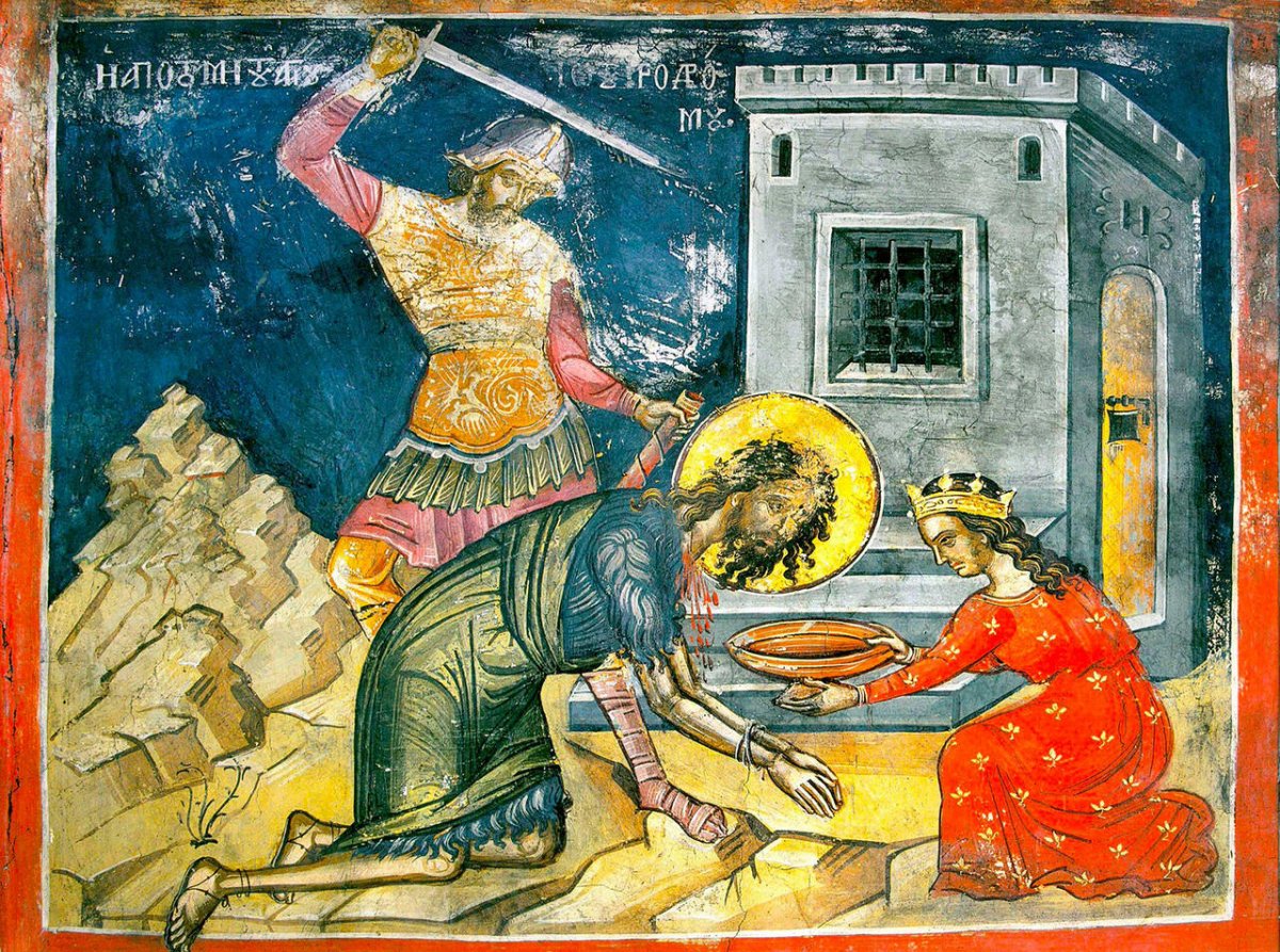 | 11 СЕНТЯБРЯ 2020 (Пятница) 12:13:46 11 сентября Церковь вспоминает мученическую смерть святого Иоанна Предтечи. Этот день называется днём Усекновения главы Иоанна Предтечи, которого Святая Церковь чтит выше всех святых после Богоматери.О мученической кончине Предтечи Господня в 32 году по Рождестве Христовом повествуют Евангелия от Матфея (Мф. 14:1-12) и Марка (Мк. 6:14-29). Однако Священное предание Апостольской Церкви сохранило некоторые подробности этих событий, происходивших незадолго до Распятия и Воскресения Христова. После смерти Ирода Великого римляне разделили территорию Палестины на четыре части и в каждой части поставили правителем своего ставленника. Ирод Антипа получил от императора Августа в управление Галилею. У него была законная жена, дочь аравийского царя Арефы. Ирод оставил её и сожительствовал с Иродиадой, женой своего брата. Пророк Иоанн неоднократно обличал его, но царь не посмел причинить ему зла, так как почитал Иоанна Крестителя как пророка и боялся народного гнева. Всё же святой Иоанн Креститель был посажен в темницу царём Иродом (Лк. 3, 19-20). В день своего рождения Ирод устроил богатый пир, на котором перед гостями плясала Саломия, дочь Иродиады. Она так угодила этим Ироду, что он поклялся перед гостями дать ей всё, чего бы она ни попросила. Саломия пошла к матери за советом. Иродиада научила дочь просить голову святого Иоанна Крестителя. Ирод опечалился: он боялся гнева Божиего за убийство пророка, но не мог нарушить неосторожной клятвы. Иоанну Крестителю отрубили голову и отдали Саломии. По преданию, голова продолжала обличать Ирода и Иродиаду. Неистовая Иродиада исколола язык пророка булавкой и закопала голову в нечистом месте. Но Иоанна, жена царского домоправителя Хузы, тайно взяла святую главу, положила в сосуд и погребла её на Елеонской горе, в одном из поместий Ирода. Тело святого Иоанна Крестителя взяли его ученики и погребли его. Божий гнев обрушился на тех, кто решился погубить пророка. Саломия переходила зимой реку Сикорис и провалилась под лёд. Она висела телом в воде, а голова её находилась надо льдом. Подобно тому, как она некогда плясала ногами по земле, теперь она, словно пляшущая, производила беспомощные движения в ледяной воде. Так она висела до тех пор, пока острый лёд не перерезал её шею. Голову её, отрезанную острой льдиной, принесли Ироду и Иродиаде, как некогда принесли им голову Иоанна Предтечи, а тело её так и не нашли. Аравийский царь Арефа в отмщение за бесчестие своей дочери — жены Ирода четверовластника — двинул свои войска против нечестивого царя и нанёс ему поражение. Римский император Гай Юлий Цезарь Калигула (37-41 гг.) в гневе сослал Ирода вместе с Иродиадой в заточение в Галлию, а потом в Испанию. Там они были поглощены разверзшейся землей. Через много лет после казни Иоанна Крестителя, когда земля, в которой покоился сосуд со святою главой Предтечи, перешла в собственность благочестивому вельможе Иннокентию, этот сосуд был обретён при строительстве церкви, Иннокентий узнал о величии святыни по бывшим при этом чудесам и знамениям. Но перед своей кончиной, боясь как бы святыня не была поругана иноверцами, он снова скрыл её в том же месте. Прошло много лет, церковь, построенная Иннокентием, пришла в запустение. Во время правления императора Константина Великого двум инокам, пришедшим на п