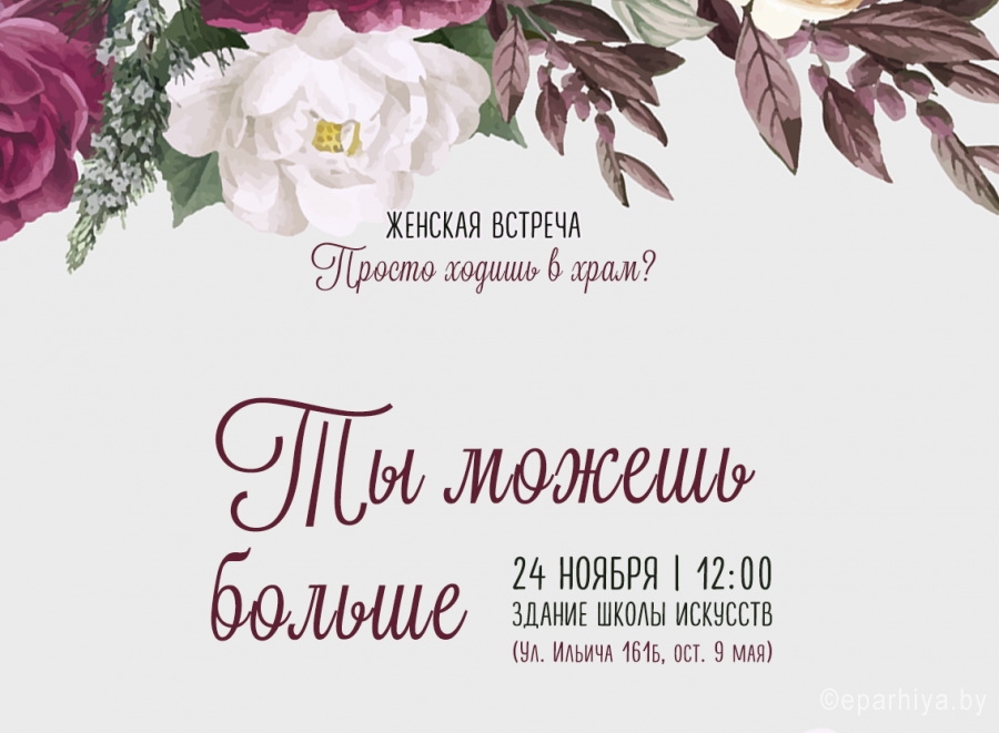 | | 8 НОЯБРЯ 2019 (Пятница) 10:16:19 24 ноября в 12:00 в Гомеле состоится мероприятие "Женская встреча".