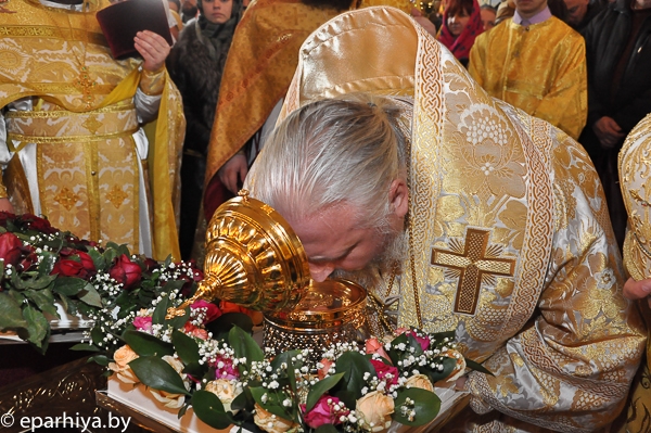 | | 7 ОКТЯБРЯ 2013 (Понедельник) 19:33:35 6 октября в храм Преображения Господня города Гомеля прибыл ковчег с частицей мощей апостола Андрея Первозванного. Торжественная встреча мощей состоялась перед началом Божественной Литургии, которую возглавил епископ Гомельский и Жлобинский Стефан.