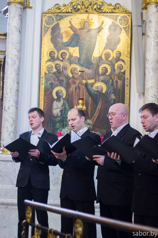 В программе концерта приняла участие доктор искусствоведения Лариса Густова, познакомившая зрителей со смыслом и значением богослужебных песнопений. Интересно, что особое место в концерте было уделено мужским хоровым коллективам: выступили мужской хор "Источник" Свято-Петро-Павловского собора столицы, белорусский византийский хор "Артос". Также зрители услышали церковные песнопения в исполнении камерного хора "Добровест", молодёжный женский хор "Фреска", хоровую капеллу "Академия", ансамбль древней музыки "Сретение".