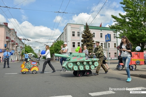 Шествие родителей и детей в фантастически украшенных колясках началось от бобруйского кафедрального собора Святителя Николая. Под приветственные возгласы прохожих и гудки автомобилей сказочные корабли, королевские кареты и даже танк проследовали по улице Интернациональной до городского парка культуры и отдыха.