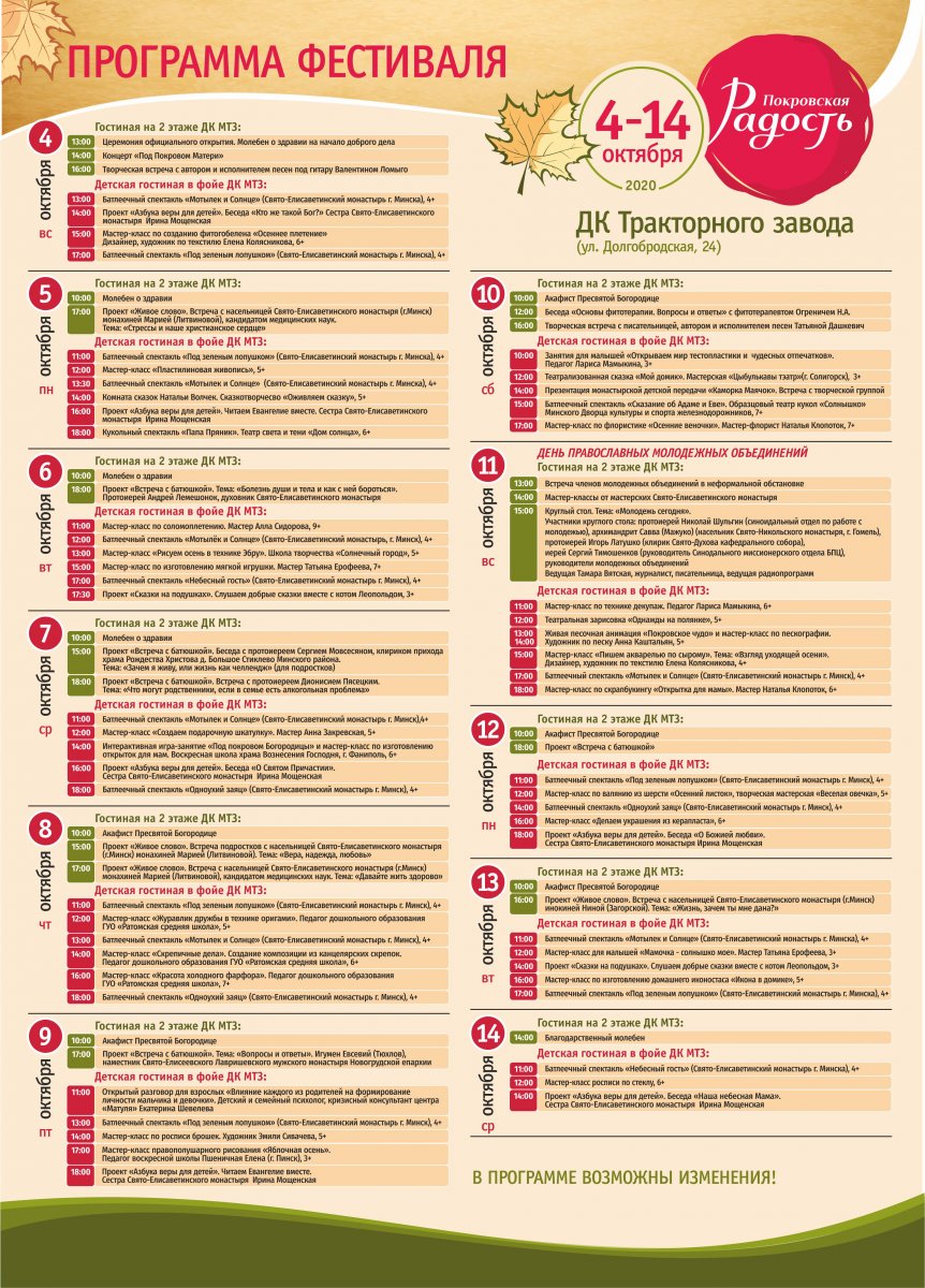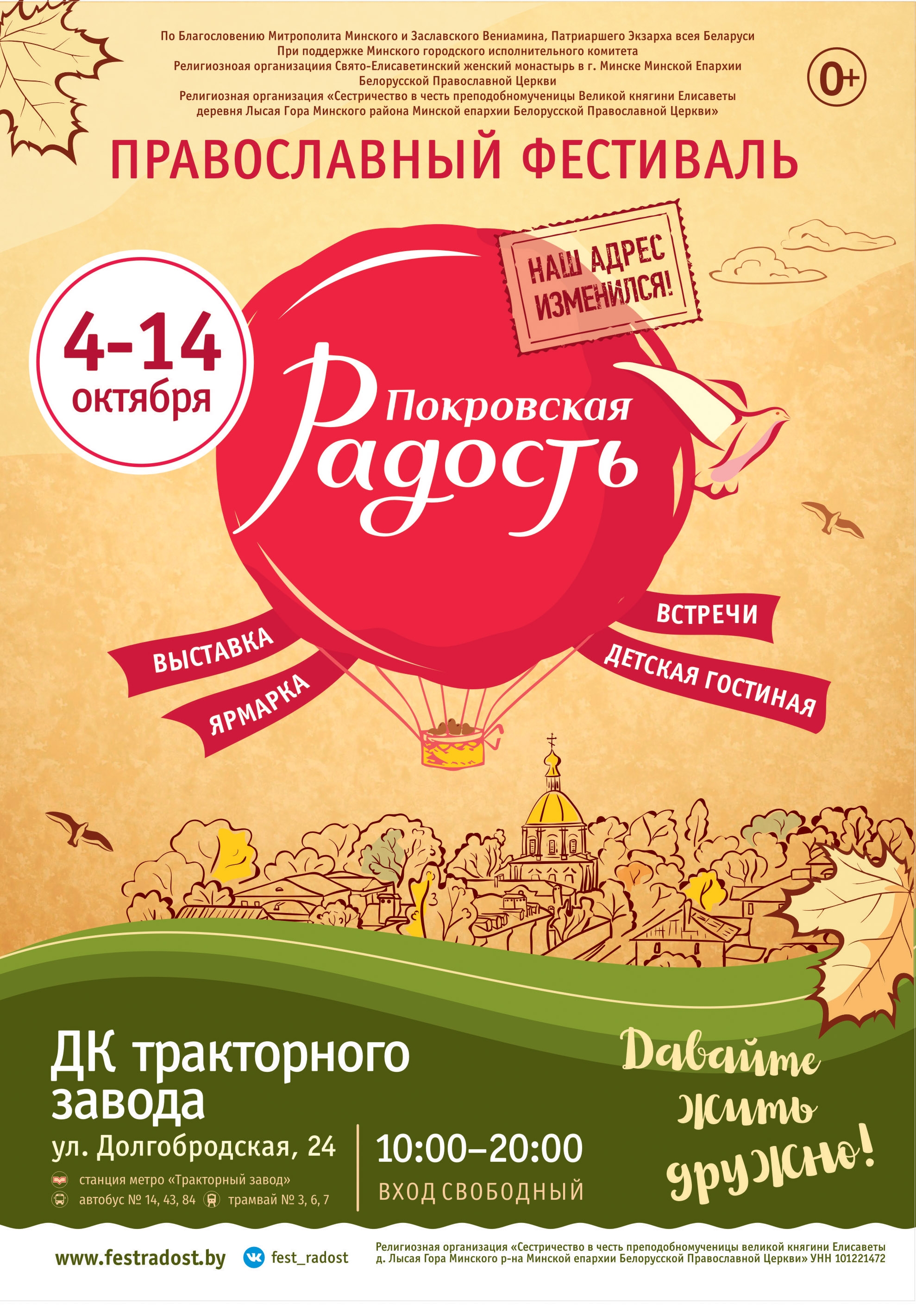 Молитва, беседы о духовном и творчество для души - 4-14 октября во Дворце культуры Минского тракторного завода пройдет православный фестиваль "Покровская Радость". Форум приурочен к празднику Покрова Пресвятой Богородицы.