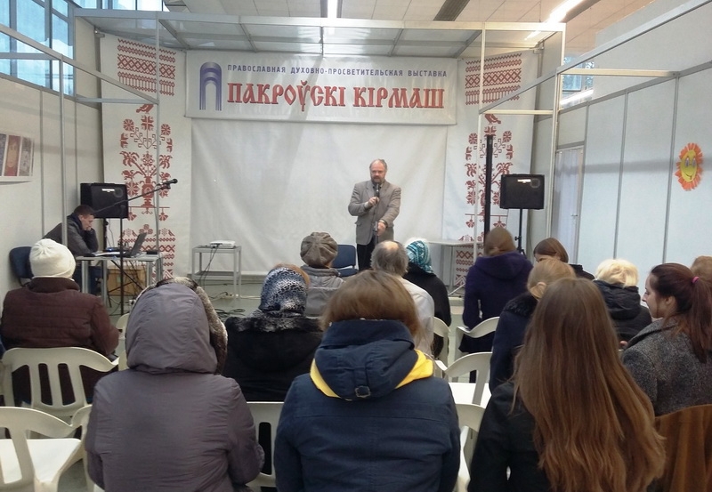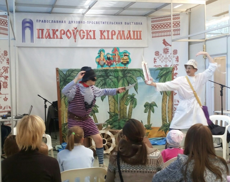 | 17 ОКТЯБРЯ 2016 (Понедельник) 10:50:04 В национальном выставочном центре в Минске начала работу 13-я международная духовно-просветительская выставка-ярмарка "Пакроўскі кірмаш " . Открытие выставки, в котором приняли участие духовник выставки, настоятель Богоявленского прихода Минска иерей Владимир Герасименко, председатель оргкомитета православных выставок Александр Савин, настоятель храма иконы Божией Матери "Живоносный источник" иеромонах Максим с монахом Дамианом, состоялось 14 октября. Затем состоялся молебен на начало доброго дела у иконы Божией матери "Живоносный источник" - главной святыни выставки. После молебна посетители прикладывались к иконе, получая благословение отца Максима. В этот же день прошла встреча с настоятеле храма иконы Божией Матери "Всецарица" протоиереем Кириллом Шолковым на тему "Воспитание детей в православной вере. Помощь преподобного Стилиана Пафлагонского". После просмотра документального фильма "Крест святой Нины" состоялась встреча с режиссёром, актёром Евгением Пименовым и его ученицами. Были показаны театрально-студенческие работы Екатерины Ермак, Александры Грыу, Евгении Королёвой: моноспектакль "Агафья Тихоновна" по мотивам Н.В.Гоголя, прозвучали отрывки из романа Ф.М.Достоевского "Преступление и наказание", поэзия И.Бродского, А.Усачёва, чеховские рассказы. Завершился первый день выставки выступлением музыкальной группы "Сустрэча" Сестричества Свято-Елисаветинского монастыря. 16 октября программу мероприятий начал Координационный Центр по противодействию наркомании и алкоголизму БПЦ в честь св. муч. Вонифатия. Состоялся семинар для родственников алкоголе- и наркозависимых людей "Возлюби ближнего твоего. Возможно ли любить алкоголика или наркомана". Открыл это мероприятие руководитель Координационного центра, настоятель храма иконы Божией Матери "Неупиваемая Чаша" протоиерей Дионисий Пясецкий. Особое место среди воскресных мероприятий выставки-ярмарки было отведено большой духовно-музыкальной программе творческого объединения “Сияние” студентов Белорусской государственной академии музыки “Антоний Сурожский – апостол любви”. Чистые, звенящие молодостью голоса солистов творческого коллектива, без малейшей фальши выводили сложные певческие пассажи классических произведений. И это только усиливало ошеломляющее впечатление от продемонстрированных зрителям видеооткровений митрополита Антония Сурожского и трогательного рассказа студентов о трагических событиях его нелегкой жизни. Завершился воскресный день на выставке спектаклем для семейного просмотра “Доктор Айболит: Вера, Надежда, Любовь” с участием актёра театра и кино, ведущего телевизионной программы “Калыханка” Александра Ждановича. Яркая и непосредственная актёрская игра позволила знаменитому Маляванычу легко и совершенно незаметно вовлечь весь зрительный зал в забавное и увлекательное действие спектакля. Взяв за основу сказку К. Чуковского, белорусский актёр добавил к ней чуточку своей харизмы, бездну творческой фантазии и частичку светлой православной души. Зрители с готовностью приняли его правила. Уходя от повседневных забот, со светлыми улыбками взрослые и дети беззаботно повторяли предложенные актёром движения и известные детские песенки. Нарисованные в воображении посетителей выставки 