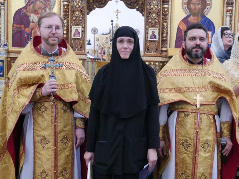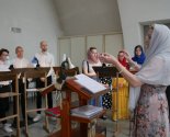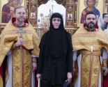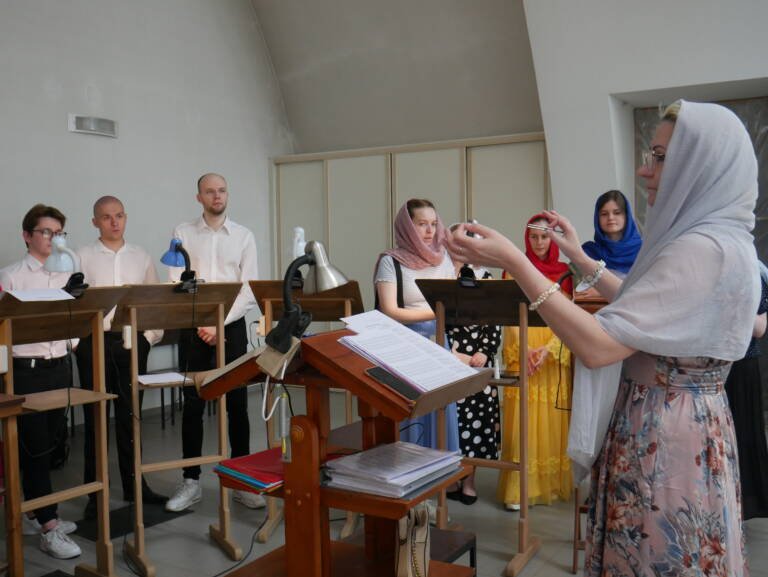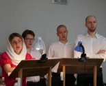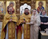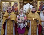 В храме торжественно прозвучали духовные песнопения, исполненные Богослужебным хором духовного училища под управлением Натальи Медведь.